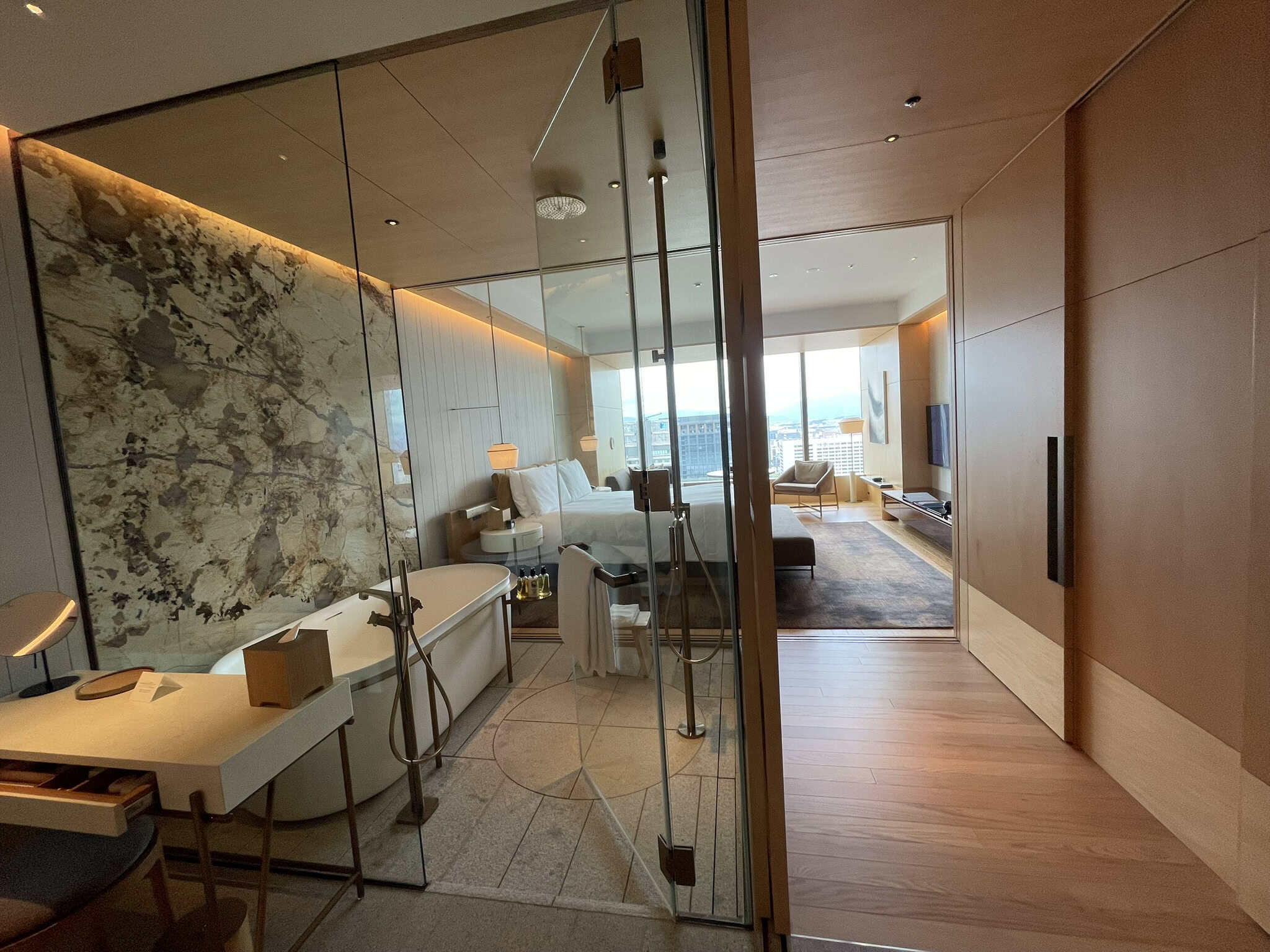 全ての客室が50㎡以上という贅沢さ。外の喧騒とは切り離され、部屋に入るだけでリセットされていると思えるような空間です。