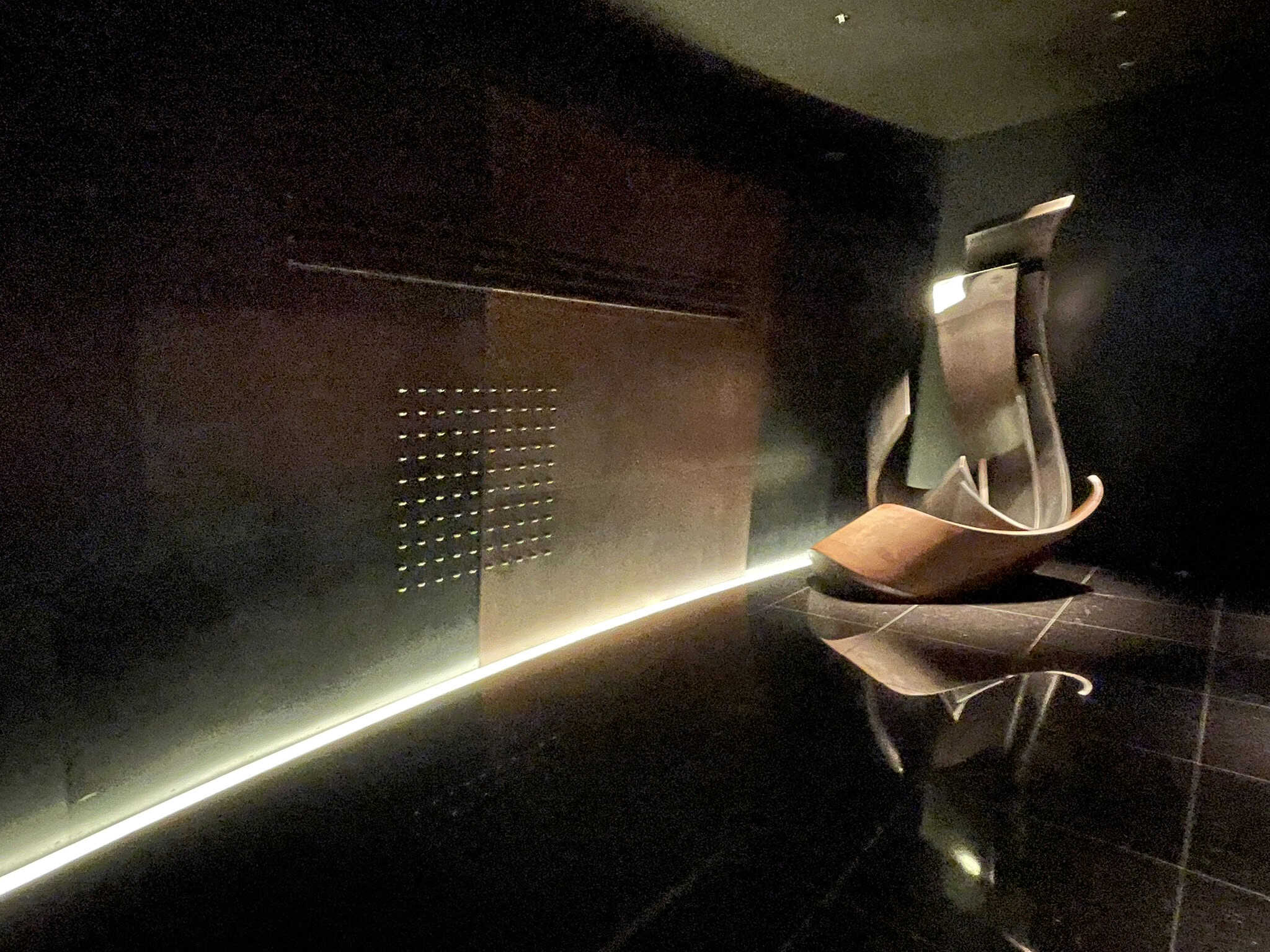 館内に漂うオリジナルディフューザー「ブラックオーキッド」の香りで瞬時に心が特別な空間に導かれます。ホテル内には至る所に九州ゆかりの作家さんのアートが点在します。美術館ではないので、ひとつひとつに説明書きがあるわけではないが、作品にまつわる物語をホテルの方に聞いてみるのも楽しみのひとつ。泊まるだけでなく、知的好奇心が満たされていくのを感じ、まさに心を整えるための場所という表現に相応しいホテルです。