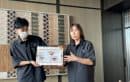 翌日はカリナリージャーニーのメインプログラムでもある博多の無形文化財「曲げ物」づくりに挑戦。たった1軒だけとなってしまった博多曲物を守り継ぐ「博多曲物 玉樹」の18代目・柴田玉樹さんの手ほどきを受けながら、曲げわっぱを桜の皮で縫い閉じるという作業を体験。皮は繰り返し繰り返しナイフで削り、薄くする。なんと強い皮だろう。いにしえの人の知恵を感じる。THE RITZ-CARLTON FUKUOKAのロゴの入ったわっぱが完成。自分の手仕事で作り上げた特別な伝統工芸品は旅の思い出としても、最高です。
