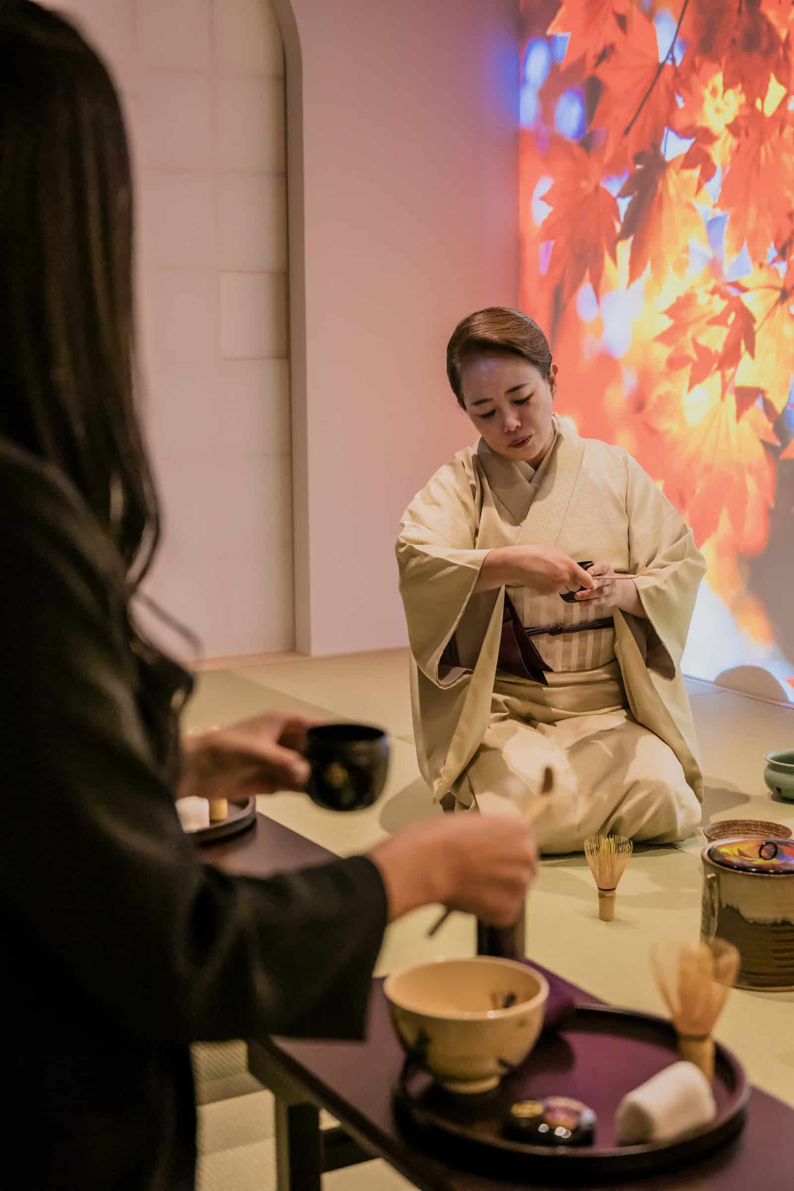ラウンジの奥にひっそりと佇むのが、茶室。ここで、本格的な茶道を体験できます。
