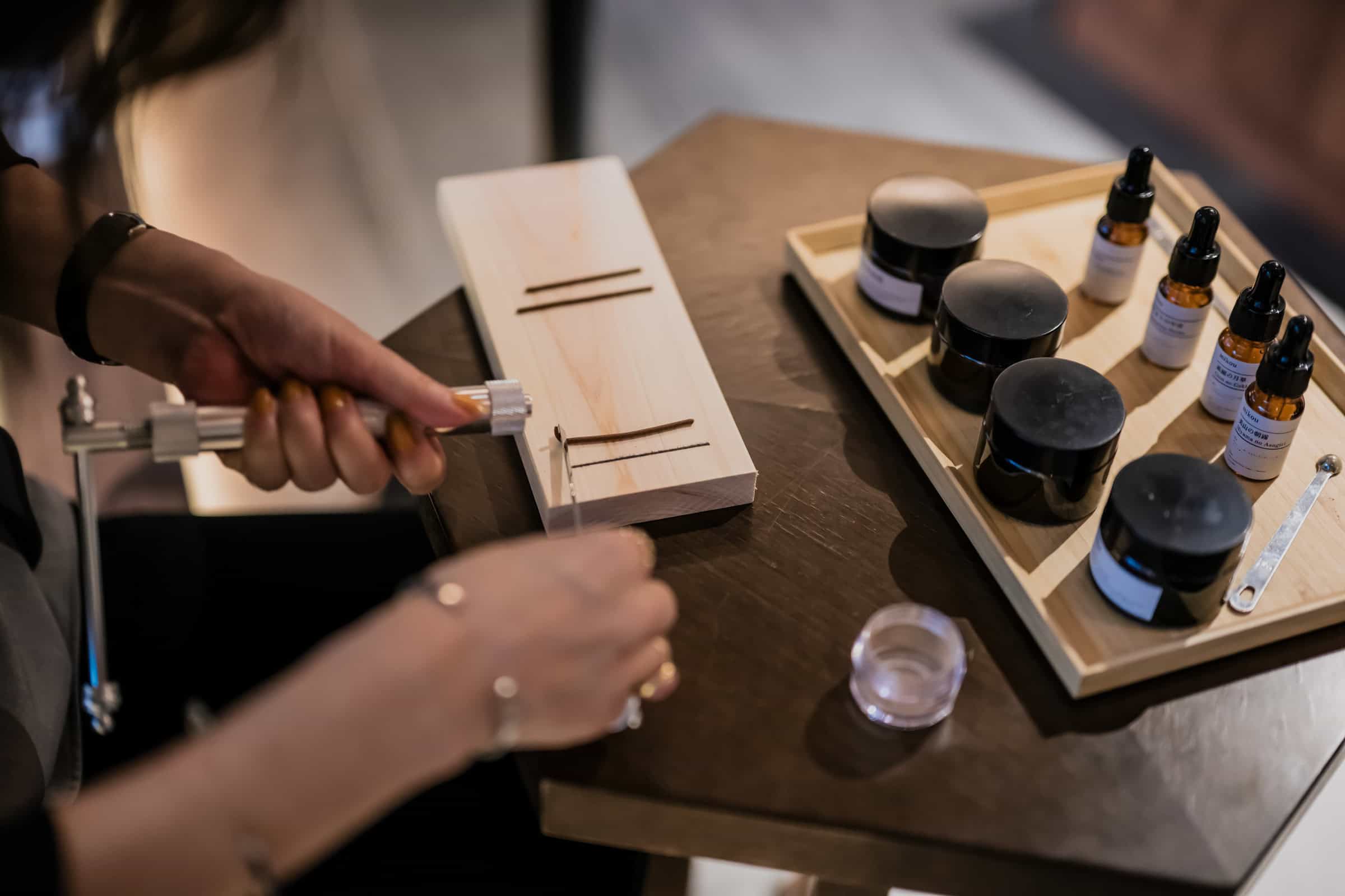 烏丸御池駅から徒歩3分の調香ショップ「mikou」にて、同様の体験をすることができます。
