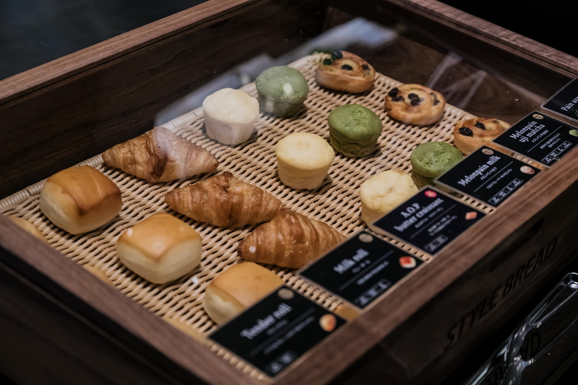 パン屋さんが多いと言われる京都の特性を発揮し、美味しそうなパンが並び
