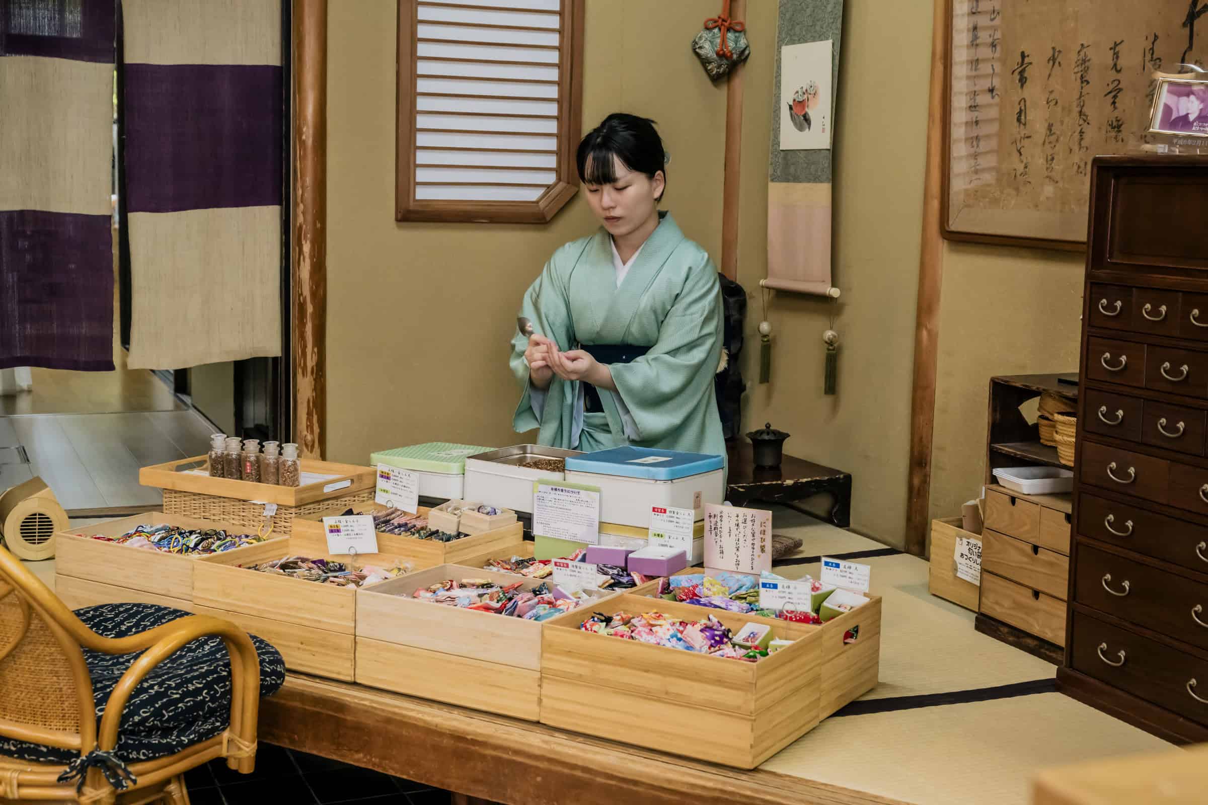 店の奥には、オリジナルの「MYにほひ袋」をその場で作れるコーナーがあり、