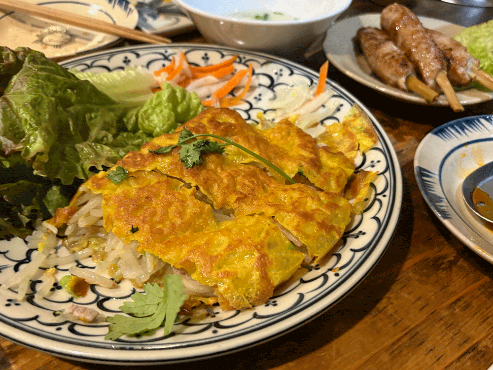 先日、美味しいと評判のベトナム料理屋にフレンチ薬膳の仲間と一緒に行ってきました。評判通り美味しかったのですが、特にみんなのお気に入りがこちらのバインセオ。