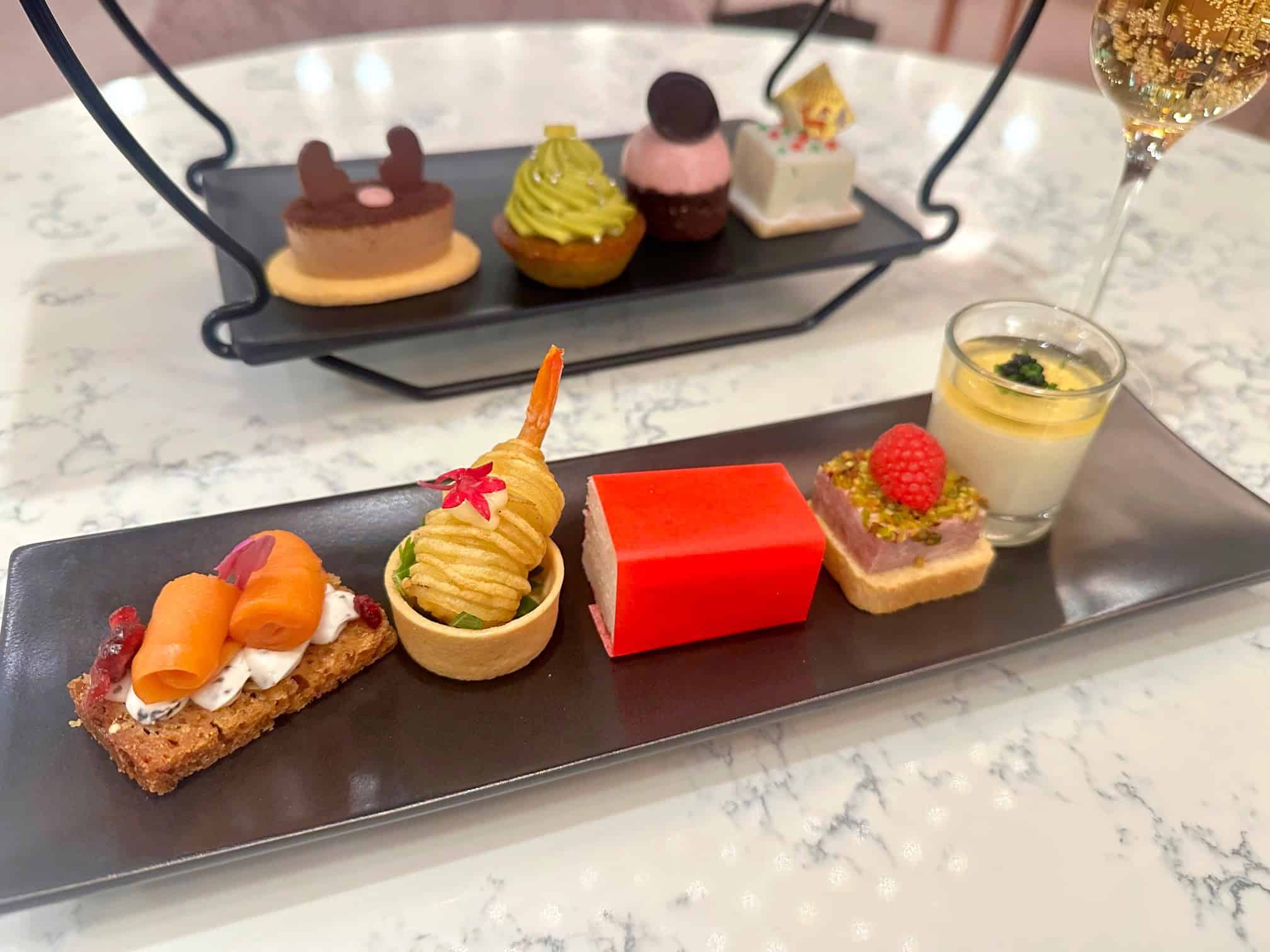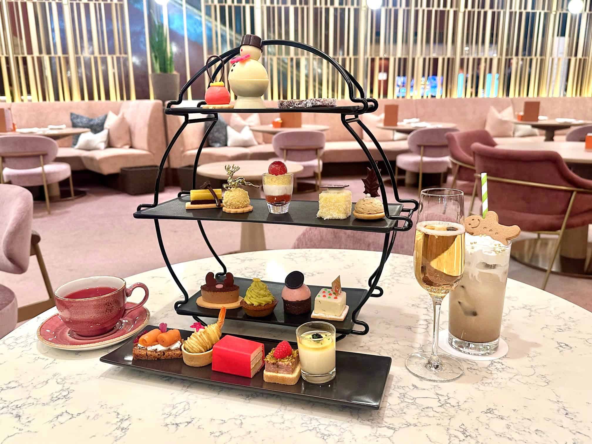 ANAインターコンチネンタルホテル東京の「アトリウムラウンジ」にて、ホリデーシーズンを華やかに彩る期間限定の「フェスティブ・アフタヌーンティー」が登場しました。ムースや焼き菓子、クリーム、ゼリーなど、様々な食感とテクスチャーのスイーツが勢ぞろい。可愛らしい12種類のスイーツと5種類のセイボリーがいただけます。