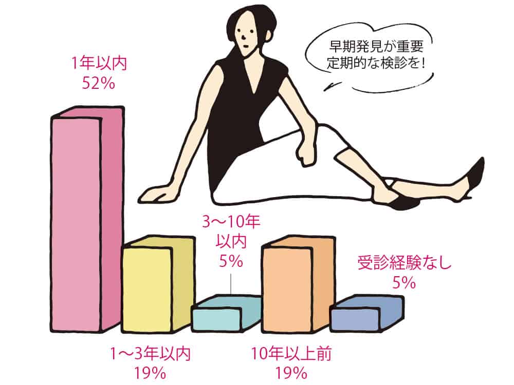 今は国の指針で40歳から2年に1回の受診が推奨されており、ほとんどの自治体から補助金ありの検診を勧める案内があります。早期発見であればあるほど完治の見込みが高いので案内に従って欠かさず受診を。