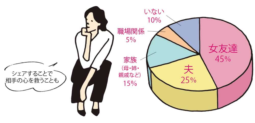 不調を周囲にシェアできる人が9割もいるという結果ですが、中には辛さをうまく伝えられずに悩む方も。頑張り屋さんほど自分に厳しい傾向があるので、まずは自分の頑張りを褒めてあげたうえで、少しずつ周りにシェアしてみては。