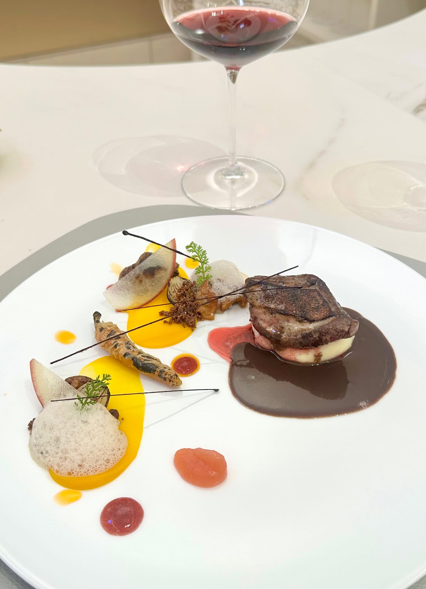 ワインは、ブルゴーニュを中心としたクラシックなラインナップに加え、安心院、菊鹿、都農など九州各地のワイナリーによる銘柄のみで構成する特別ペアリングもあります。