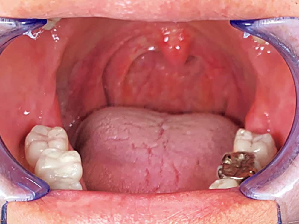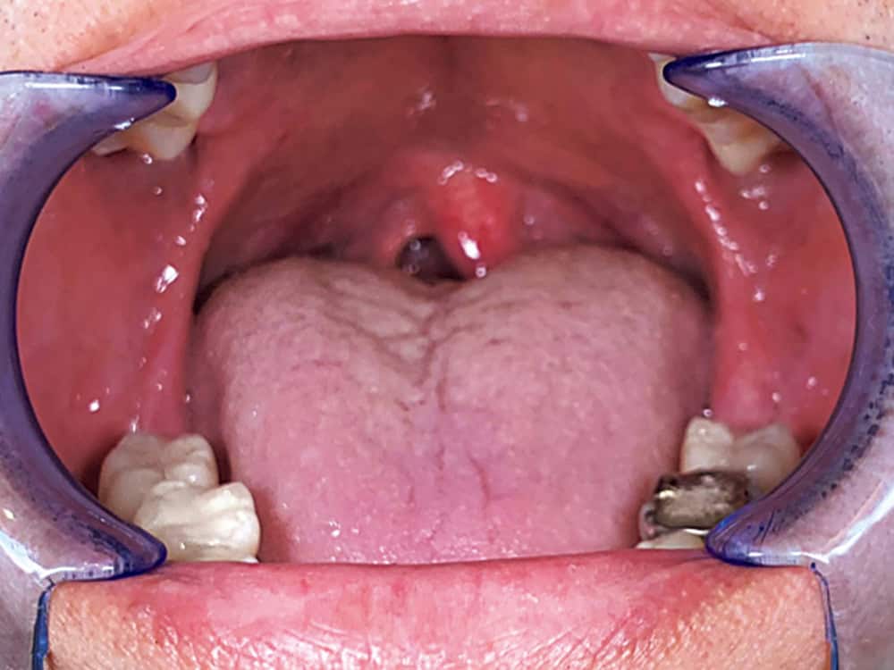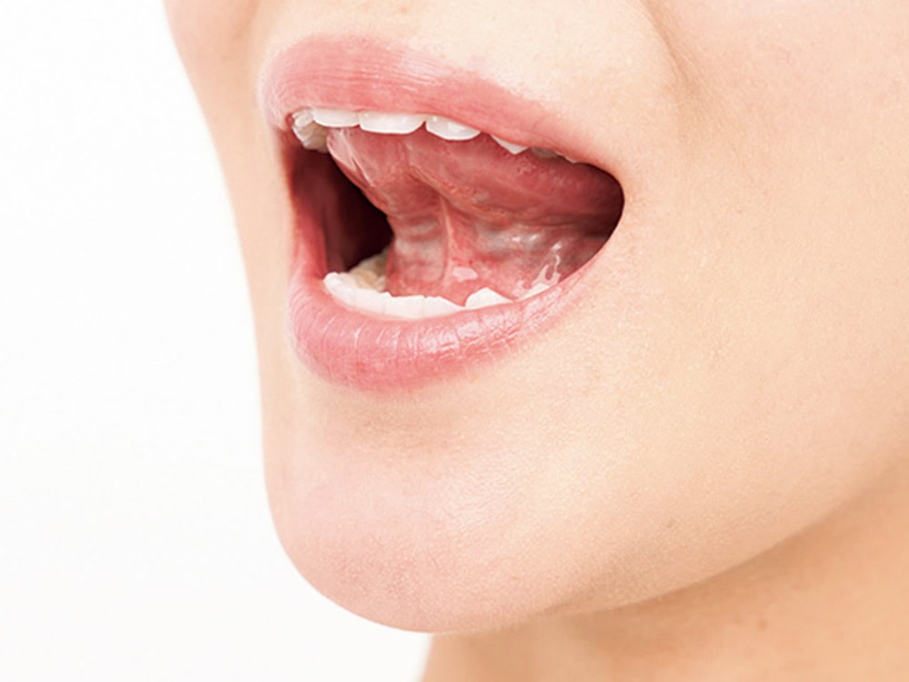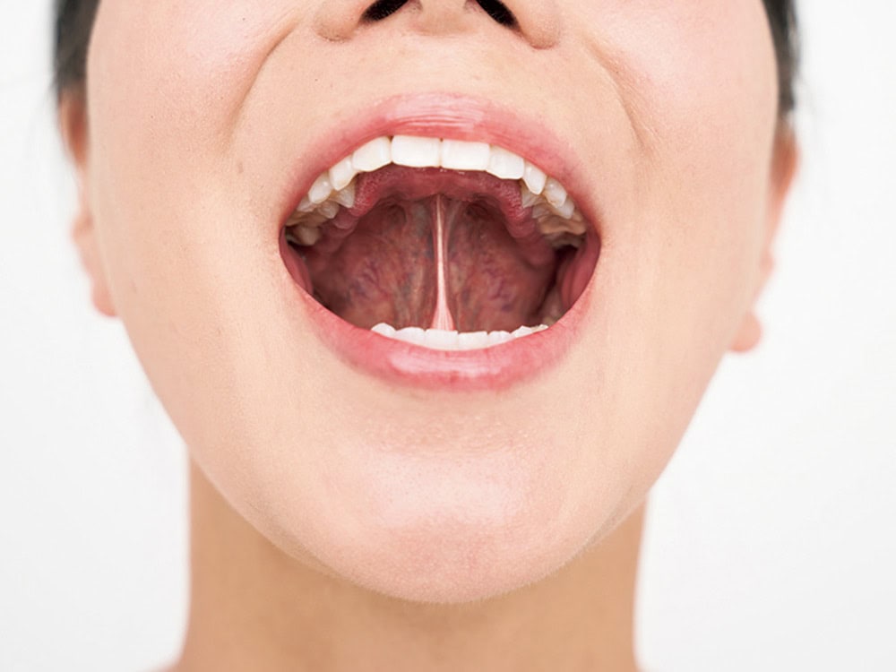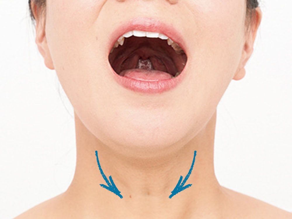 口を開けて舌全体を上顎に吸い上げて20秒キープする。舌裏に洞窟を2つ作り、2分間繰り返す。