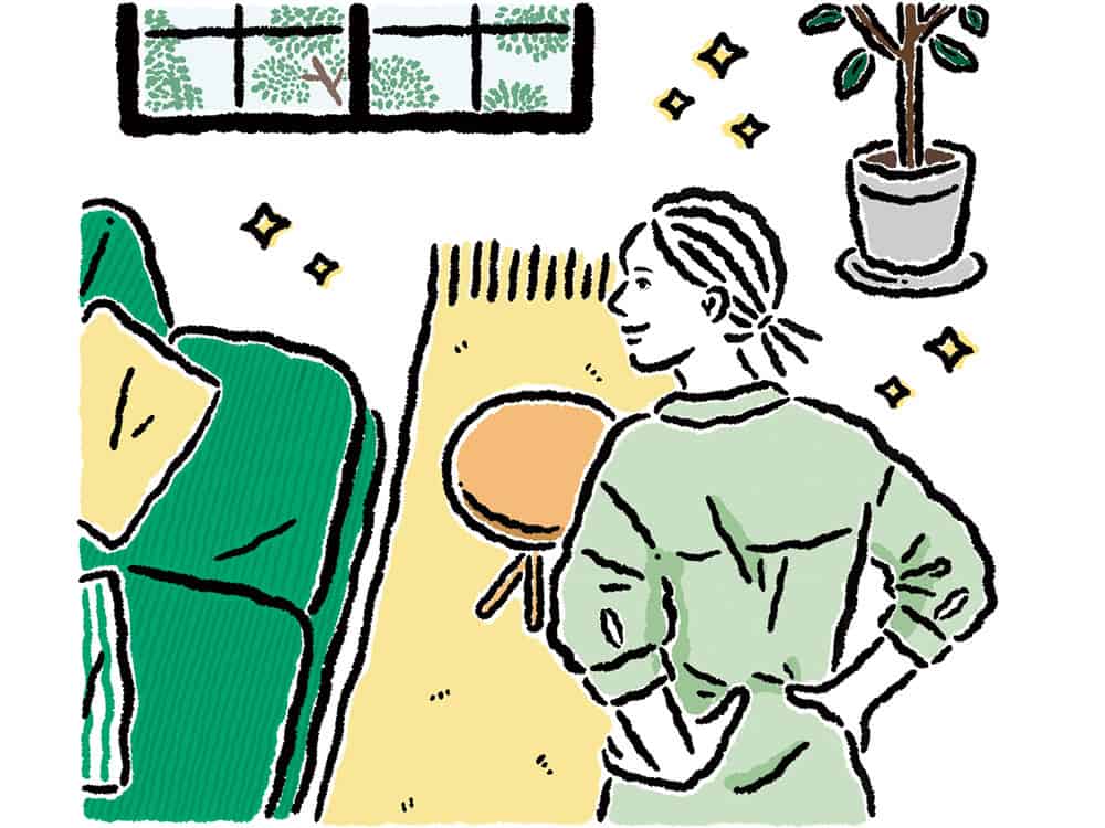 床や家具の上に放置されたものは元の場所へ。『椅子やクッションなどのインテリアだけでなく、照明や香りも意識。エメラルドグリーンやクリームイエローなどの柔らかい色を取り入れると陽の空間に』(風水師・ 李家幽竹さん)