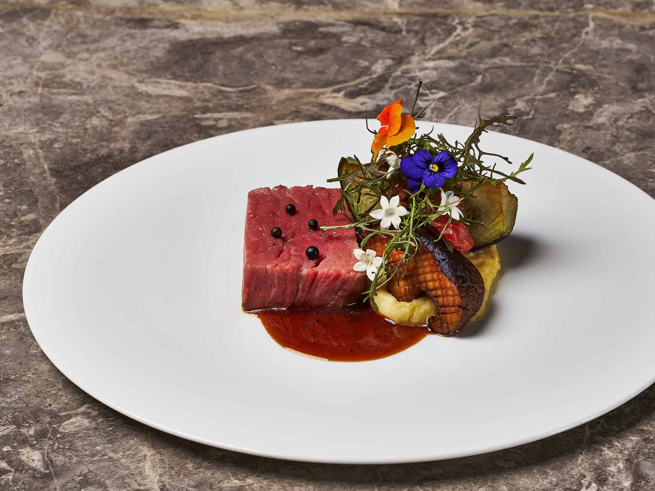 ほかにも、ヴェルサイユの庭園をイメージしてハーブや花々を贅沢に使った「殻ごと炙った天使のエビ アイオリソース ハーブと花々のライスペーパー包み」、なめらかなフォアグラムースに金柑のやさしい酸味を重ねてブリオッシュで包み込んだ「ダックフォアグラムースと金柑コンポート ブリオッシュトースト」など、スイーツの甘美な世界へとつながるメニューが並びます。