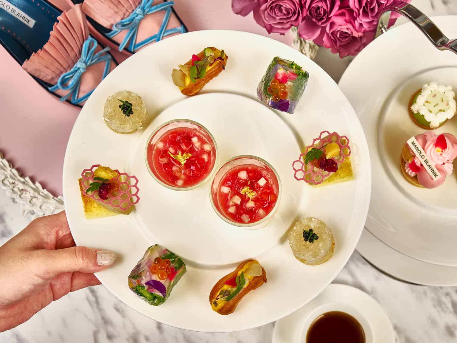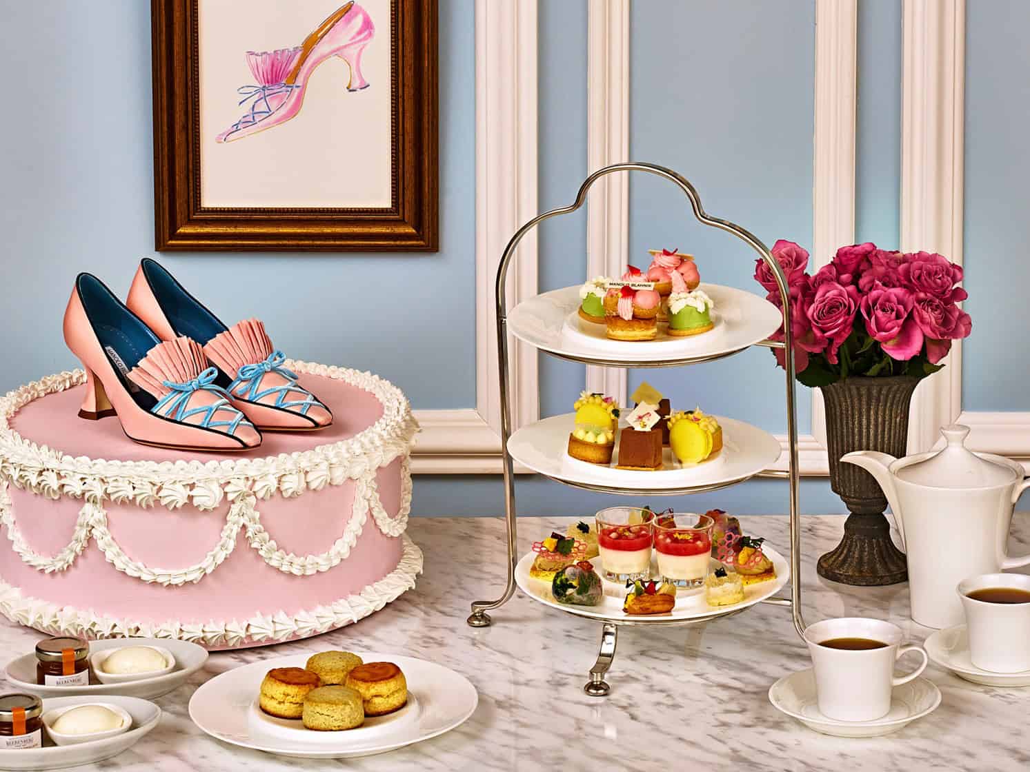 マリー・アントワネットとマノロ ブラニクの美学が重なり合うアフタヌーンティーで優雅な午後を過ごしてはいかがでしょう。