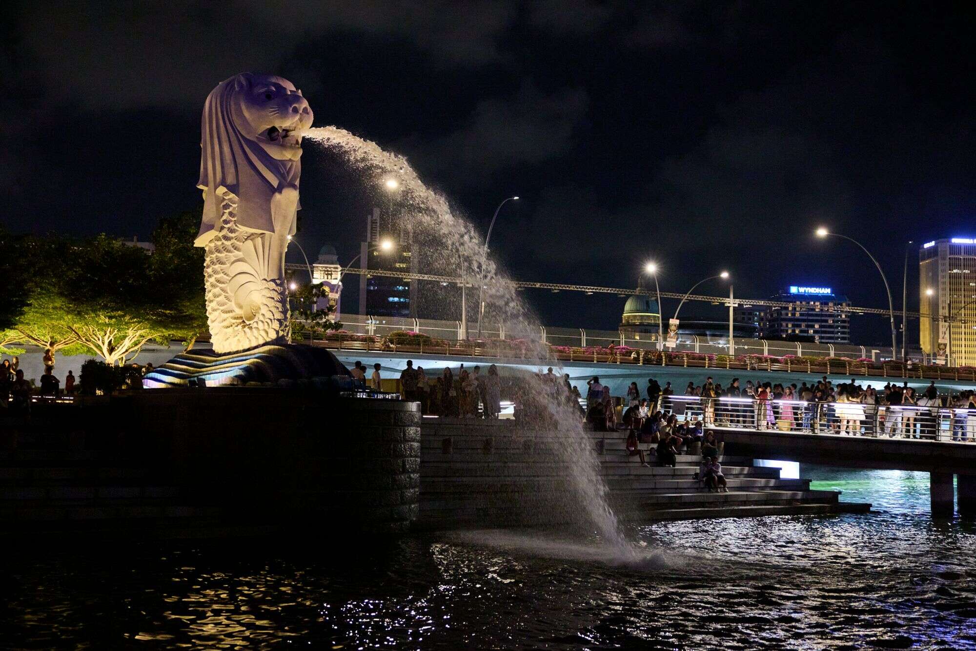 マーライオンもライトアップ