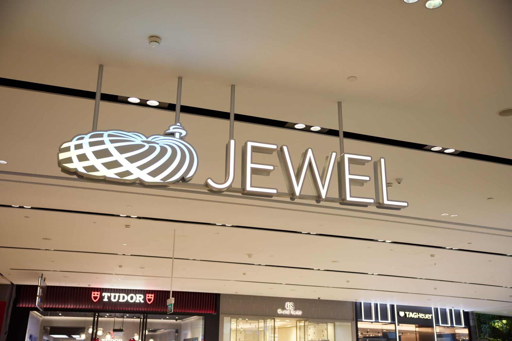 ジュエルには280の店舗が集まり、ブランドショップ、カフェ、レストランが充実。地下階にはスーパーマーケットもあるので、そこでお土産を調達するのも◎。