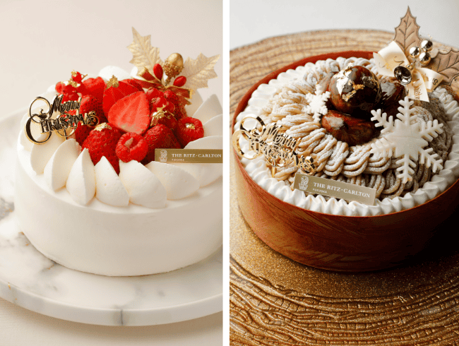 福岡県産あまおうを贅沢に使用したエレガントなストロベリーショートケーキの「ガトー・オ・フレーズ」と、熊本県産の和栗をシェフこだわりの濃厚なマロンクリームやムースに仕立てカシスのコンフィチュールが絶妙なマリアージュを奏でる「モンブラン・ノエル」、2種類のクリスマスケーキも登場。ホテルメイドの上品なケーキなら食卓が華やぐこと間違いありません。