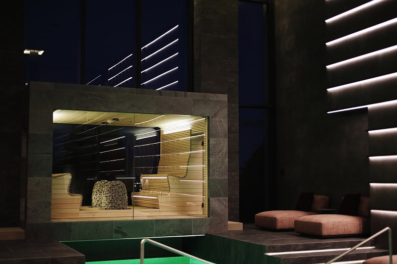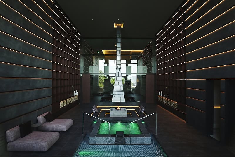 圧巻の「ウェルネス棟」。温冷交代浴でリトリートする