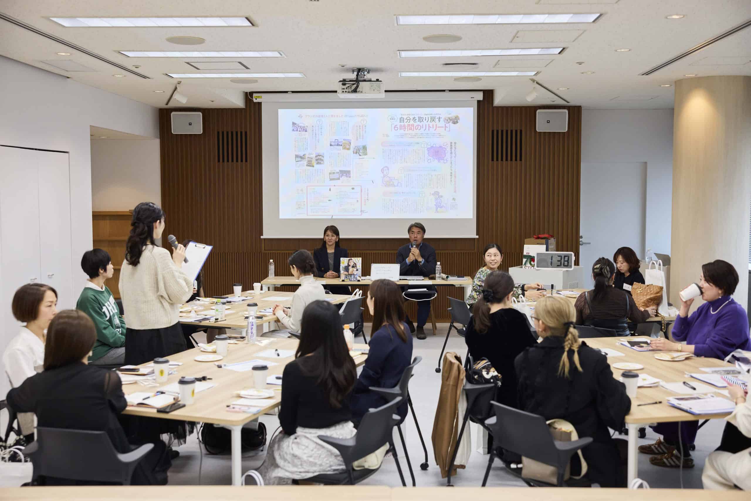 「忘れていた自分を迎えに行く、40代からのセルフラブ習慣」というプランでは、夫婦仲改善カウンセラーとして活動する参加者が、自身の経験を交えながらプレゼン。夫婦関係がこじれる背景には「自分を大切にできていないこと」があり、無意識の思い込みが現実をつくってしまう——そんな指摘に、会場も静かに耳を傾けます。「自分の声を聞く」ことを軸にした30日間の質問企画など、具体的なアイデアも提示され、編集部からも「企画として引きが強い」と前向きな声が上がる印象的なひと幕となりました。