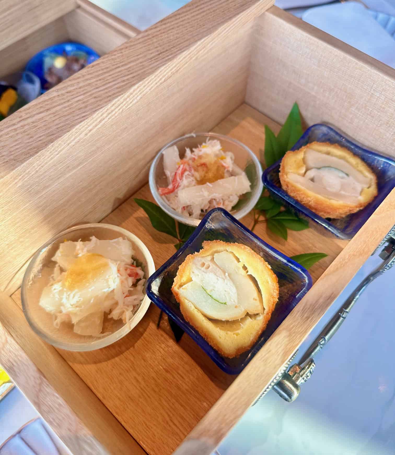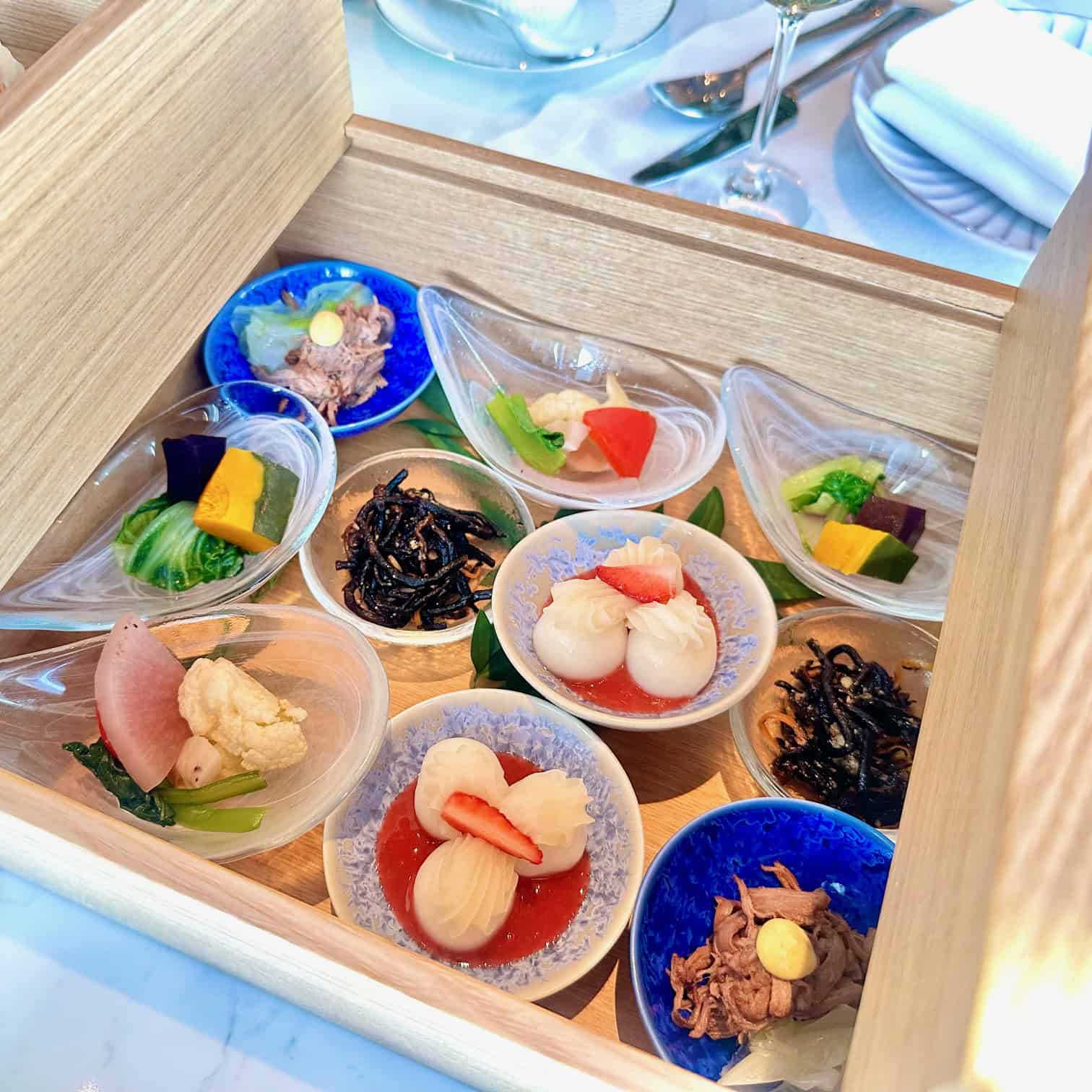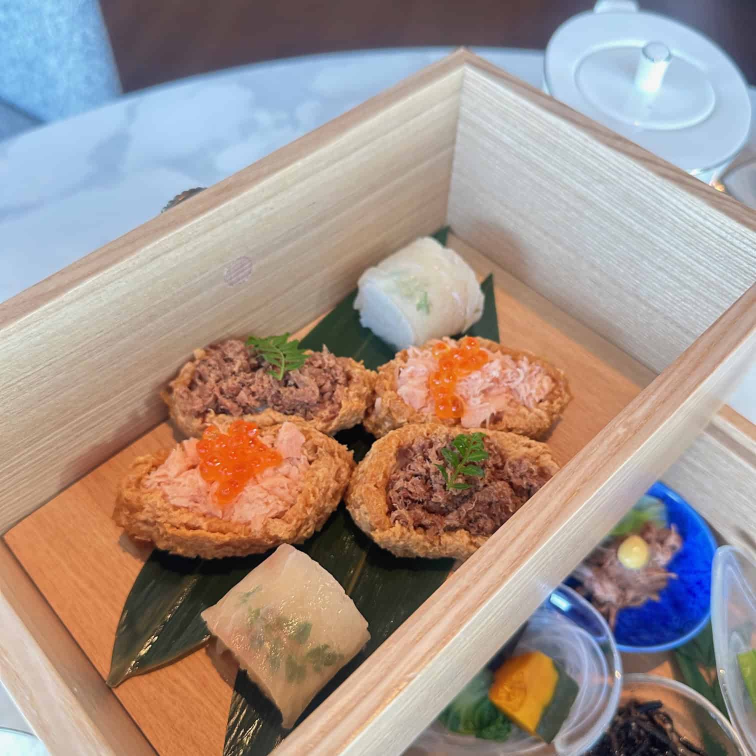 東に東京湾、西に東京タワーや都心の風景を一望する絶好のロケーションに位置するラグジュアリーホテル「フェアモント東京」の35階ロビーラウンジ「Vue Mer(ビュメール)」にて、オリジナルの美しい木箱に丁寧に収められた「和アフタヌーンティー」が2月28日(土)まで期間限定で開催中です。