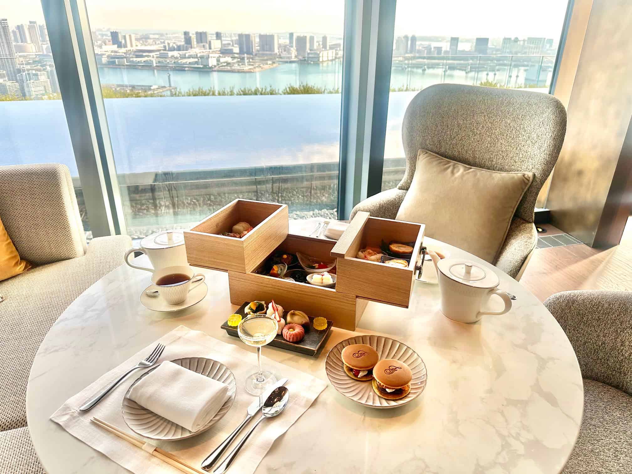 ランチコースを食べたかのような満足感があるため、ランチタイムの利用にもお勧め。ドリンクは、オリジナルのブレンドティーをはじめ様々な紅茶、ハーブティー、日本茶、コーヒー、カフェラテ、メイプルラテ、エスプレッソなど、豊富な種類から好きなだけいただけます。天井高約9.5メートルの開放感のあるロビーラウンジで、東京湾の壮大な絶景を眺めながら優雅な時間を過ごしてはいかがでしょう。