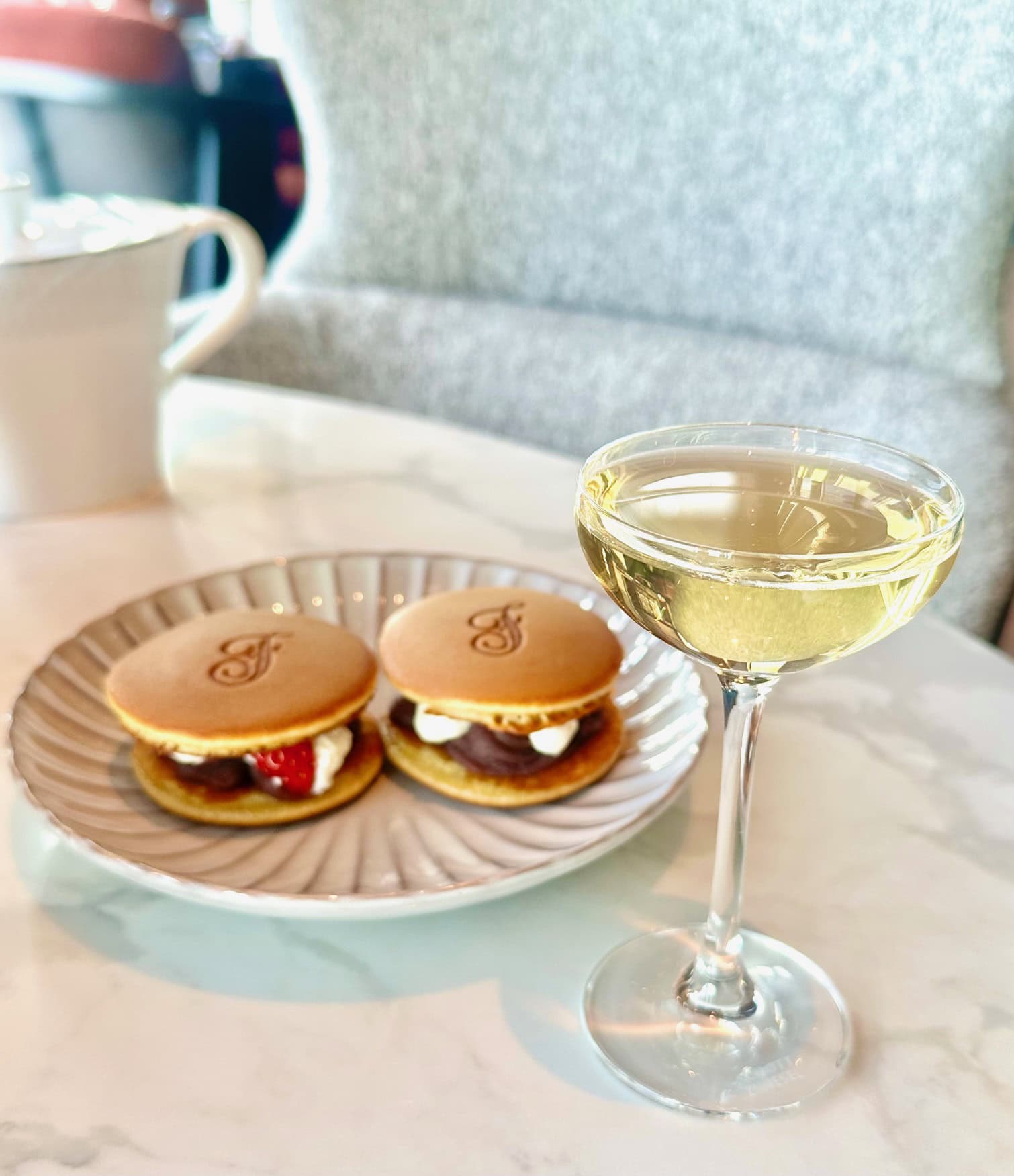 スイーツには、白玉団子に白あんとフレッシュないちごをのせた「いちごの団子」 や、表面はシャリっと中はしっとりと仕上げた自家製の「柚子の琥珀糖」 など、日本らしさを感じる繊細な和菓子がラインナップ。注文してから生地を焼き上げ、こしあんとシャンティークリーム、フルーツをサンドしたオリジナルのどら焼きも絶品です。