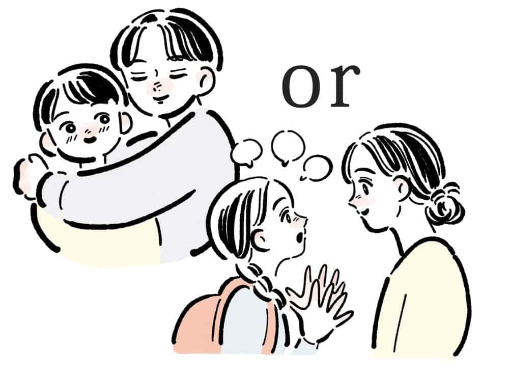 感情型の子どもは心>頭。事実より自分の価値観や感情、相手との関係性を重視する傾向にあるので、子どもの心に寄り添ってあげることが大事。「大丈夫? また頑張ればいいよ」など優しい声かけが効果的です。