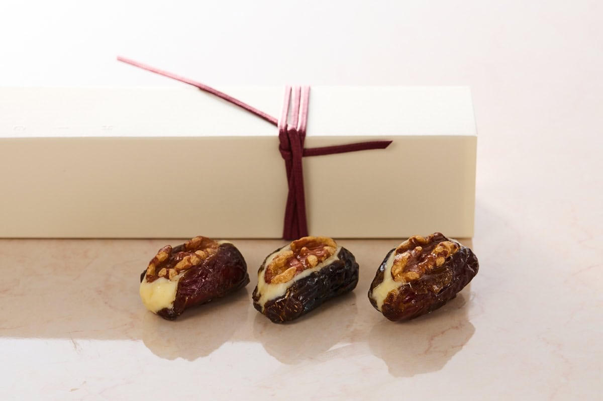 芸能人御用達としても知られ、感度の高い人たちから支持を集める和菓子店、HIGASHIYA 。今回ご紹介するのは、鉄分やカルシウムなどを含み、美容面でも注目される棗椰子(なつめやし)を使った名品「棗バター」。自然な甘みの棗椰子に、発酵バターを忍ばせ、胡桃を合わせたシンプルな構成ながら、ひと口で感じる満足感は別格。口に含んだ瞬間、棗椰子の濃厚でやさしい甘みが広がり、体温でほどけた発酵バターのコクとほのかな塩味が重なって、香ばしい胡桃がサクッと心地よいアクセントに。甘い、しょっぱい、香ばしい‥そのバランスがあまりにも絶妙で、「もうひと粒」が自然に欲しくなるおいしさ。コーヒーにもワインにも、お酒にも合い、リッチな味わいでありながら、後味は意外なほど軽やか。語れる手土産として、自分への特別な一粒として、「一度食べたら忘れられない」と名高い理由を、ぜひ体験してみて。