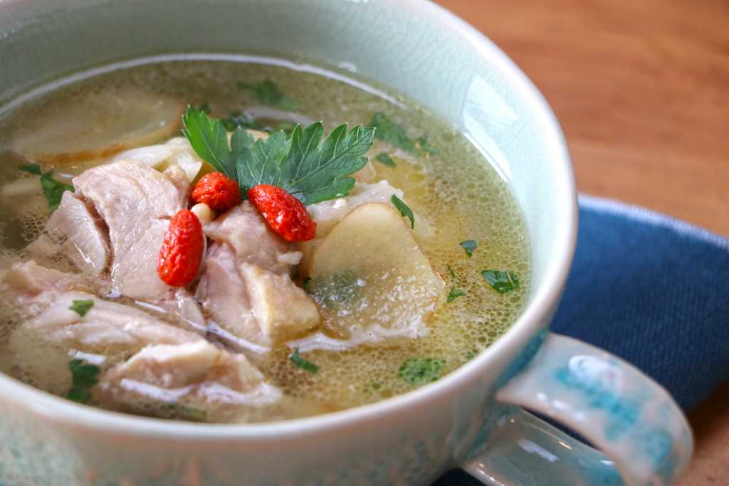 にんにくや鶏肉、クコの実を煮込んだ、台北の滋養スープ