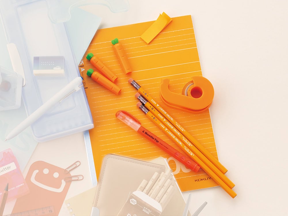 ノート¥220(キャンパスノート〈ドット入り罫線〉/コクヨ)スリーウェイ蛍光マーカー・オレンジ¥198(ビートルティップ/コクヨ)