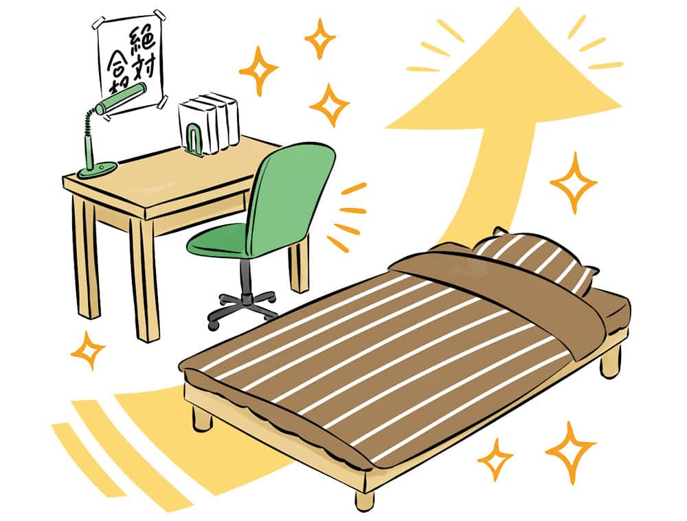 浄化の白や落ち着きカラーのベージュ・ブラウンがオススメです。特に受験前は柄物やキャラクターの寝具は避けて、無地でシンプルな寝具を選んで。邪気が溜まりやすい寝具は常に清潔を心がけましょう。(フォーチュンアドバイザー イヴルルド遙華さん)