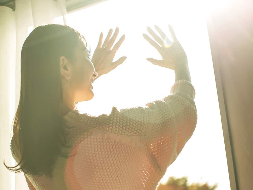 朝一番に窓とカーテンを開けて太陽の光を家に入れること。日焼けはNGだとしても、太陽に5秒間手をかざして太陽のポジティブな力を体に取り込みます。