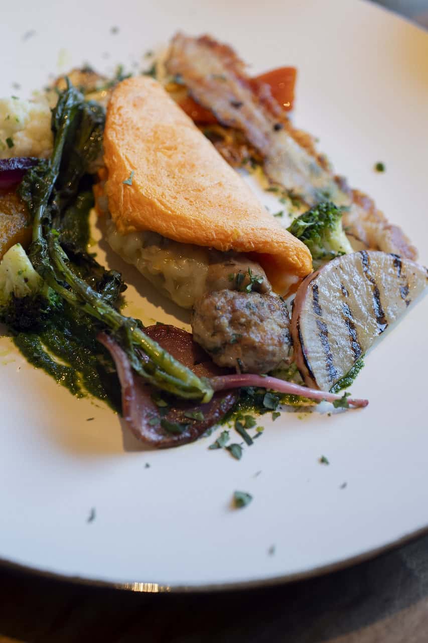 息子の一番のお気に入りはインドアガーデンでいただいたラディッシュのディップ添え。「10皿食べたい」と美味しさに悶絶。大分で採れる魚の美味しさ知る娘はカルパッチョを食べ「う~ん」とご満悦の表情。そして、葉物好きな私のお気に入りは野菜の炭火焼き。まるで絵画の作品のような一皿に感動です。