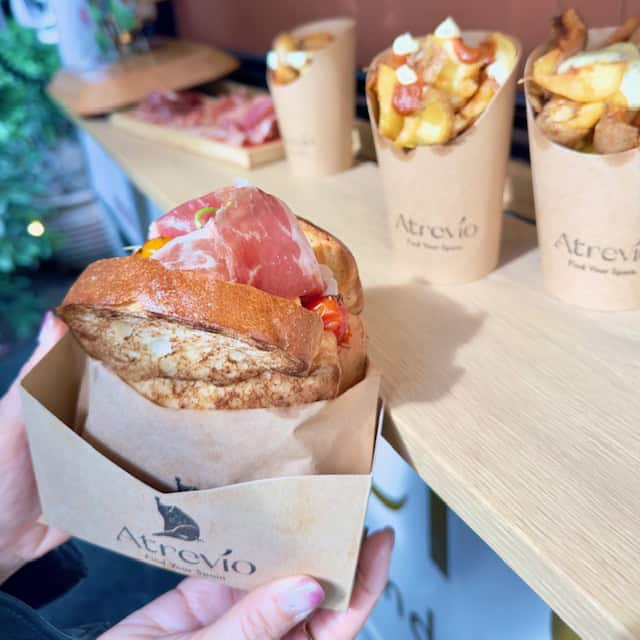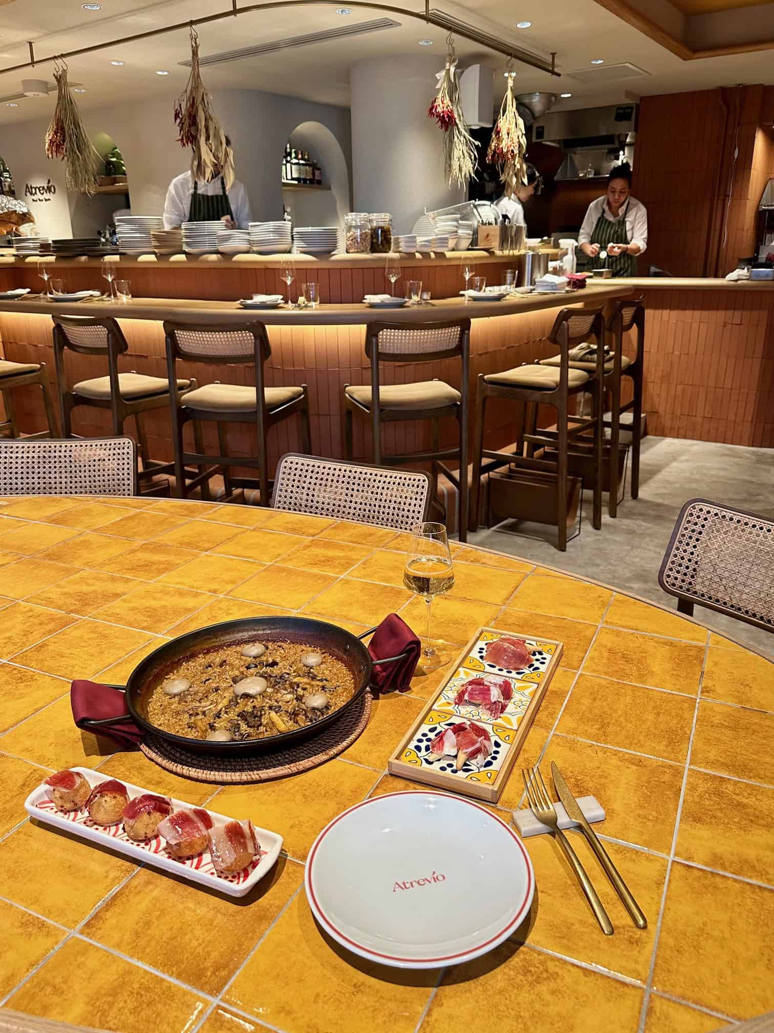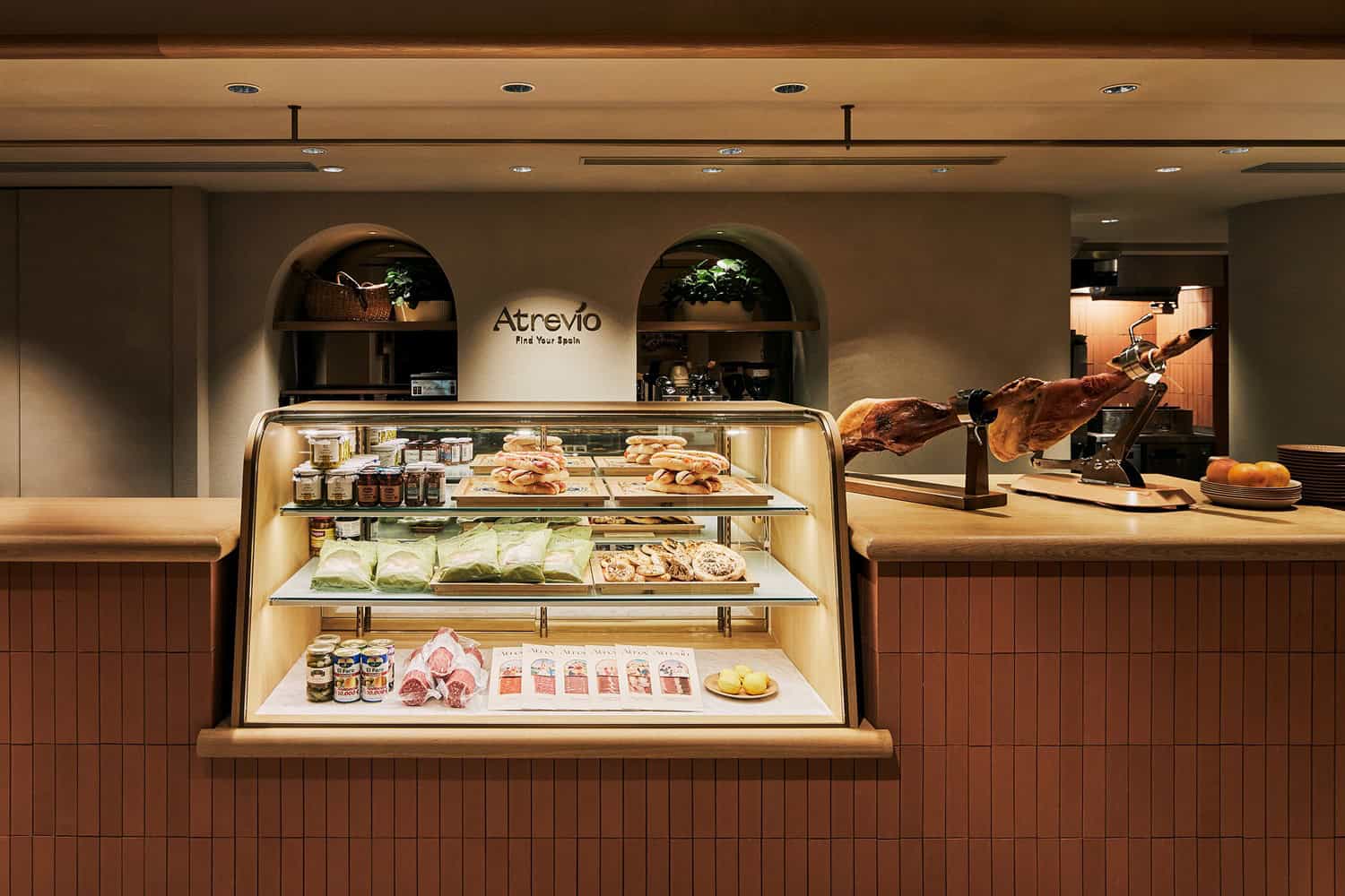 旗艦店のAtrevío(アトレヴィオ)は、昨年5月に⿇布⼗番にオープンした“ハモンリア(=ハモン専⾨店)”。まるでスペインにトリップしたようにのんびりとくつろげる店内で、スペインハモンのトップブランド「Campofrio(カンポフォリオ)」を中⼼としたハモンやオリジナルメニューを楽しめます。