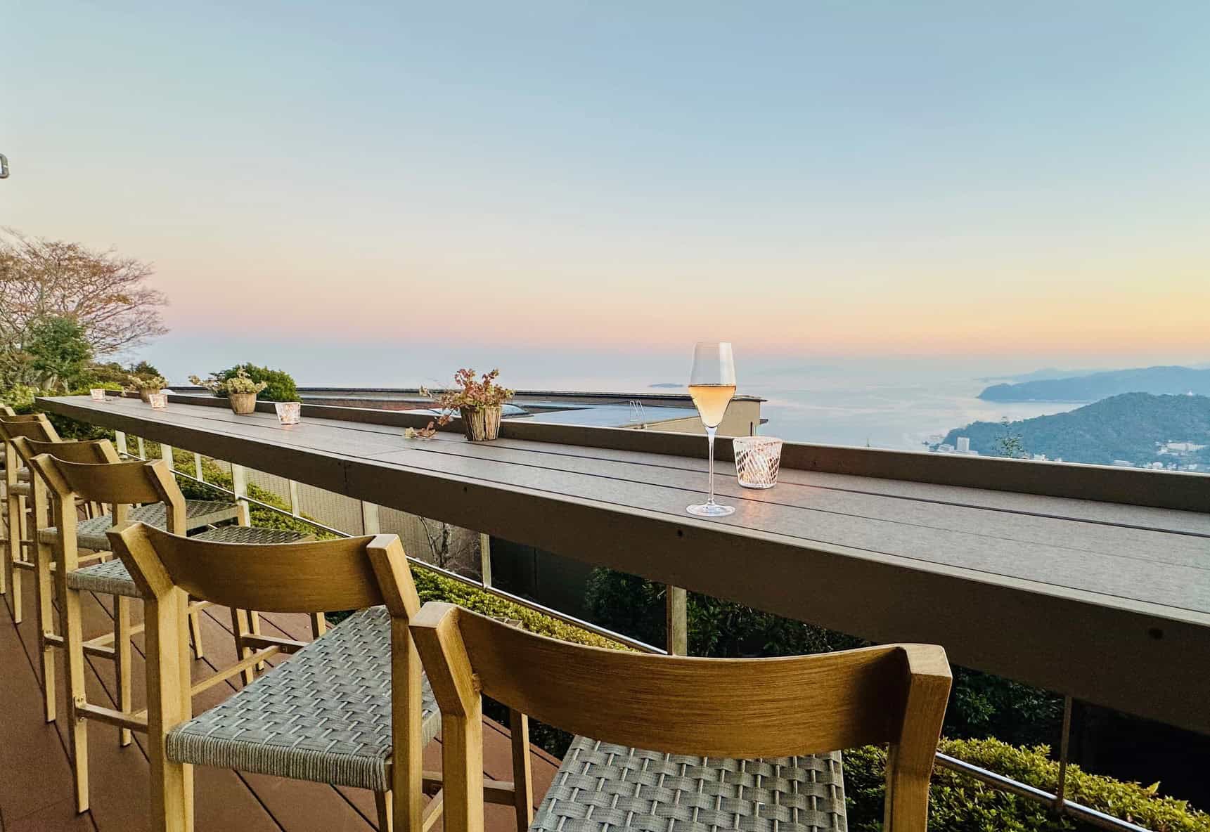 相模湾の絶景を一望できる「ホテルグランバッハ熱海クレッシェンド」は、伊豆山の高台にひっそりと佇む隠れ家のようなウェルネスリゾート。シェフが選りすぐった地産の食材によるファームトゥーテーブルの料理と、温もりあふれるパーソナルなおもてなしでゲストを出迎えてくれる極上のオーベルジュです。日本有数の温泉地ですから、もちろん湯量も豊富。肌にやさしくリラックス効果の高い温泉にたっぷりと浸かりながら癒される、至福のリトリート旅をご紹介します。
