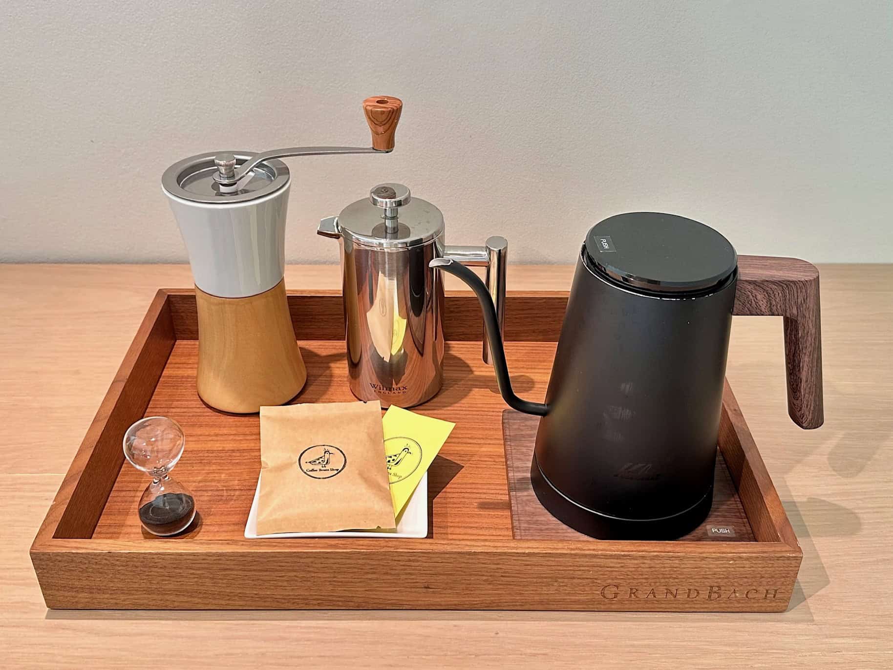 また、シャワーヘッドはReFa(リファ)、アメニティはWaphyto(ワフィト)を採用するなど、女性にとって嬉しいこだわりがいっぱい。室内には、圧倒的なサウンドで音楽を楽しめるバング&オルフセンのポータブルスピーカーや、地産のこだわりのコーヒー、紅茶、煎茶を楽しめる茶器やお茶菓子、無料のドリンクが備わり、至れり尽くせりの充実ぶりです。