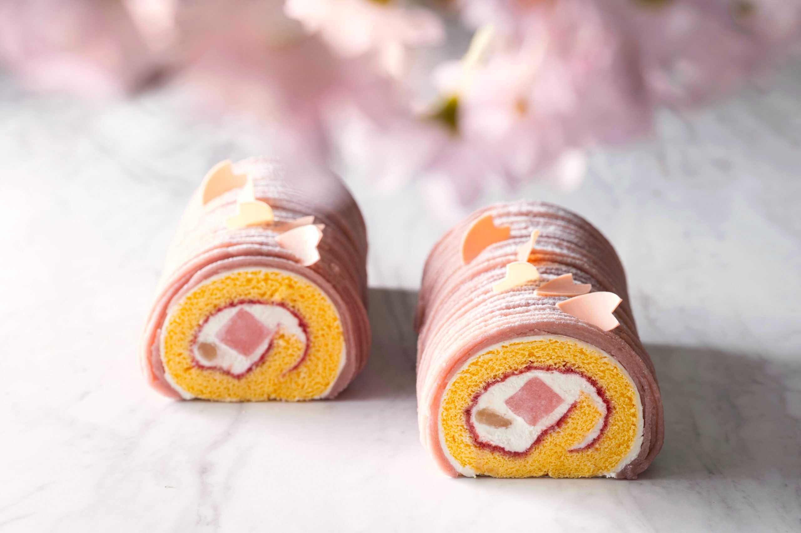 ザ・キャピトルホテル 東急にて、桜をテーマにした春の訪れを感じさせる華やかなメニューが期間限定で登場します。ペストリーブティック「ORIGAMI」では、和テイストの桜ロールケーキ」がお目見え。桜餡、餅、白鹿の子豆、生クリームをもっちりとした米粉のスポンジ生地でふんわり包み込み、桜風味のクリームでデコレーションした、和と洋のハーモニーが新感覚のスイーツです。爽やかな酸味のグリオットチェリーのコンフィチュールをアクセントとして忍ばせることで、味わいに軽やかな奥行きもプラス。春風に舞う桜の花びらを思わせるチョコレートや可愛すぎる断面にも注目です。