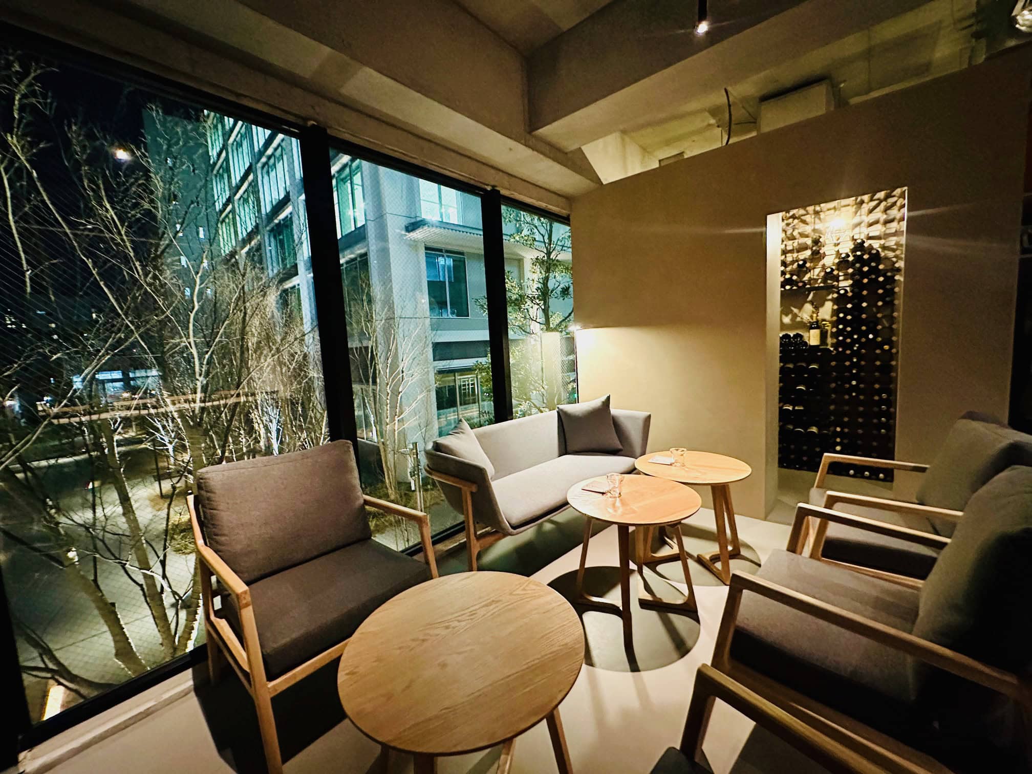 空間デザインは、ナチュラルな素材を用いたミニマルなスタイル。パリのアパルトマンのような洗練された雰囲気と、和紙や生け花がさりげなく飾られている凛とした和の空気感が心地よく融合しています。新しいワインや食材との出合い、新発見のペアリングなど、気づきのある食体験をしに訪れてみませんか?