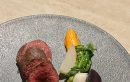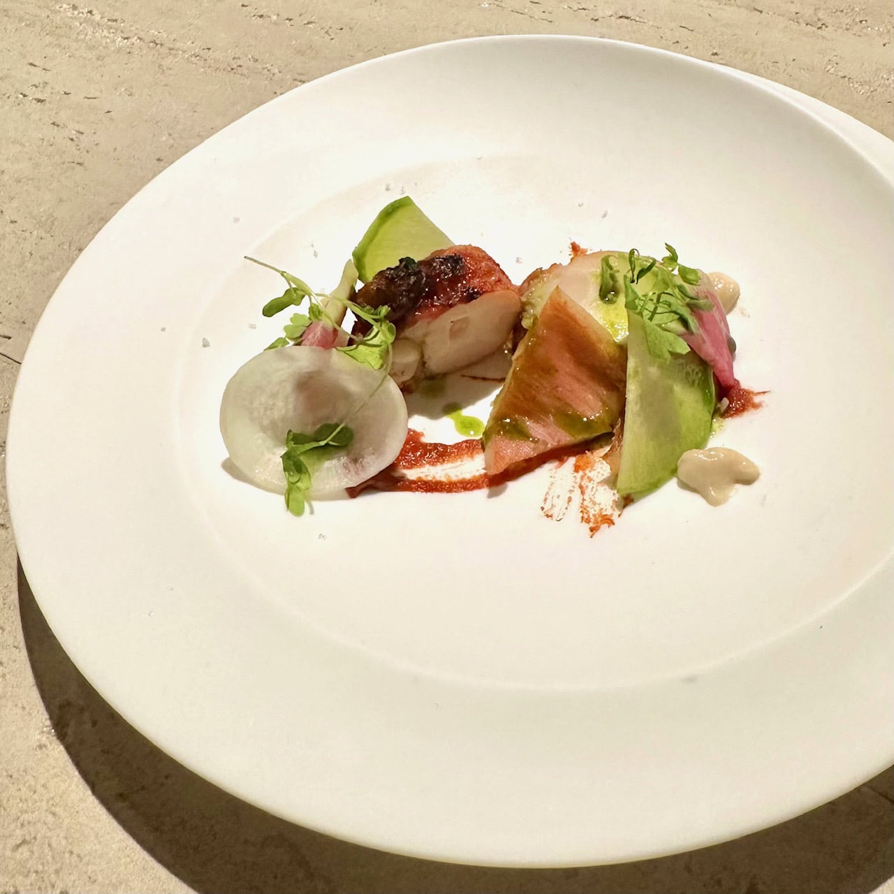 「日本の素晴らしい生産者との出会いを大切に、食材の季節性を尊重し、可能な限り日本食材を使ってその魅力をゲストに伝えることが私の使命だと感じています。野菜を主役にした皿作りや、意外な食材の掛け合わせで刺激と驚きに満ちた一皿をお届けします」
