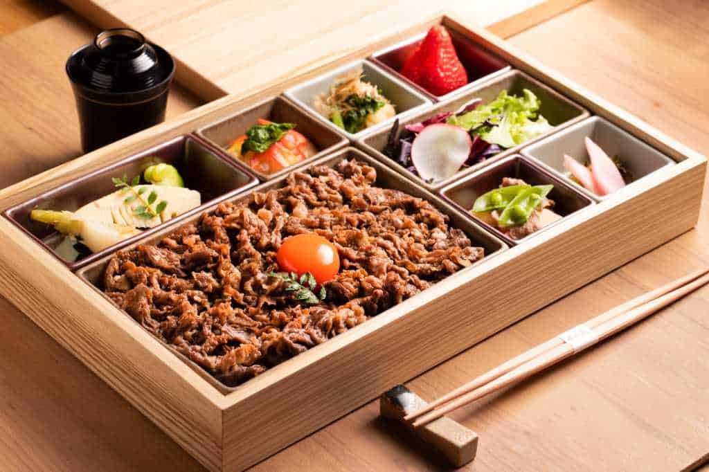 名物すき焼きのほか、黒毛和牛100%ハンバーグやA5和牛ビフテキなど人気メニューを組み合わせた御膳は、イートインはもちろんテイクアウトも可能 です。