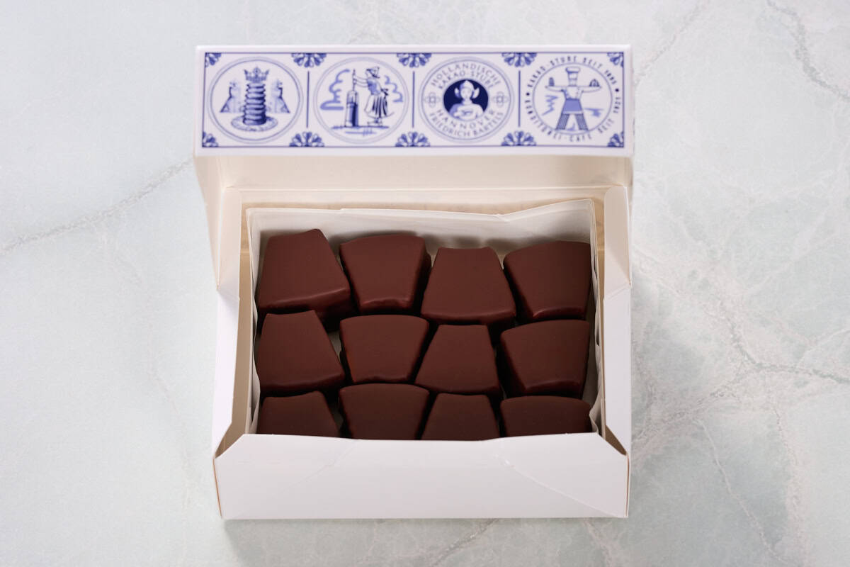 ドイツの老舗菓子ブランド、バウムクーヘンの名店ホレンディッシェ・カカオシュトゥーベの「バウムシュピッツ」。ひとくちサイズにカットされた可愛らしいバウムクーヘンに、甘酸っぱいアプリコットジャムをサンドし、チョコレートでコーティングした上品な一品です。パリッとしたチョコレートの食感と、しっとりとした生地のコントラストが心地よく、どこかほっとするやさしい甘さが広がります。気づけばもう一つと手が伸びる、あとを引く美味しさ。本場ドイツの基準に基づき、バター100%で焼き上げられた伝統の味わいも魅力です。筆者自身、何度も手土産として選んできた愛用の一品。気軽につまめるサイズ感で、ご自身へのご褒美にはもちろん、プチギフトやご挨拶の手土産にもふさわしい逸品です。