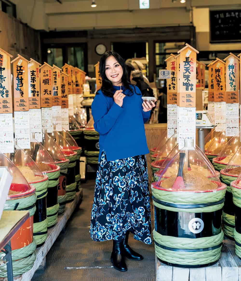 最近はお味噌にも興味があって、南小岩にあるマルイさんや亀戸の「佐野みそ」さんなど、こだわりのお味噌を置いてあるお店にも足を運んでいます。「佐野みそ」は、全国から様々なタイプのお味噌が集まっている、まさに「味噌のテーマパーク」のような場所。どのお味噌もこうじ菌、酵母菌、乳酸菌で発酵・熟成された逸品ばかりで目移りします。ほぼ全部のお味噌を自分で試食できるので、好みや用途に合わせて選べるのも大きなポイント。おにぎりと味噌汁がいただけるイートインやテイクアウトもあるので定期的に通いたい、私にとっての〝パワースポット〟です。