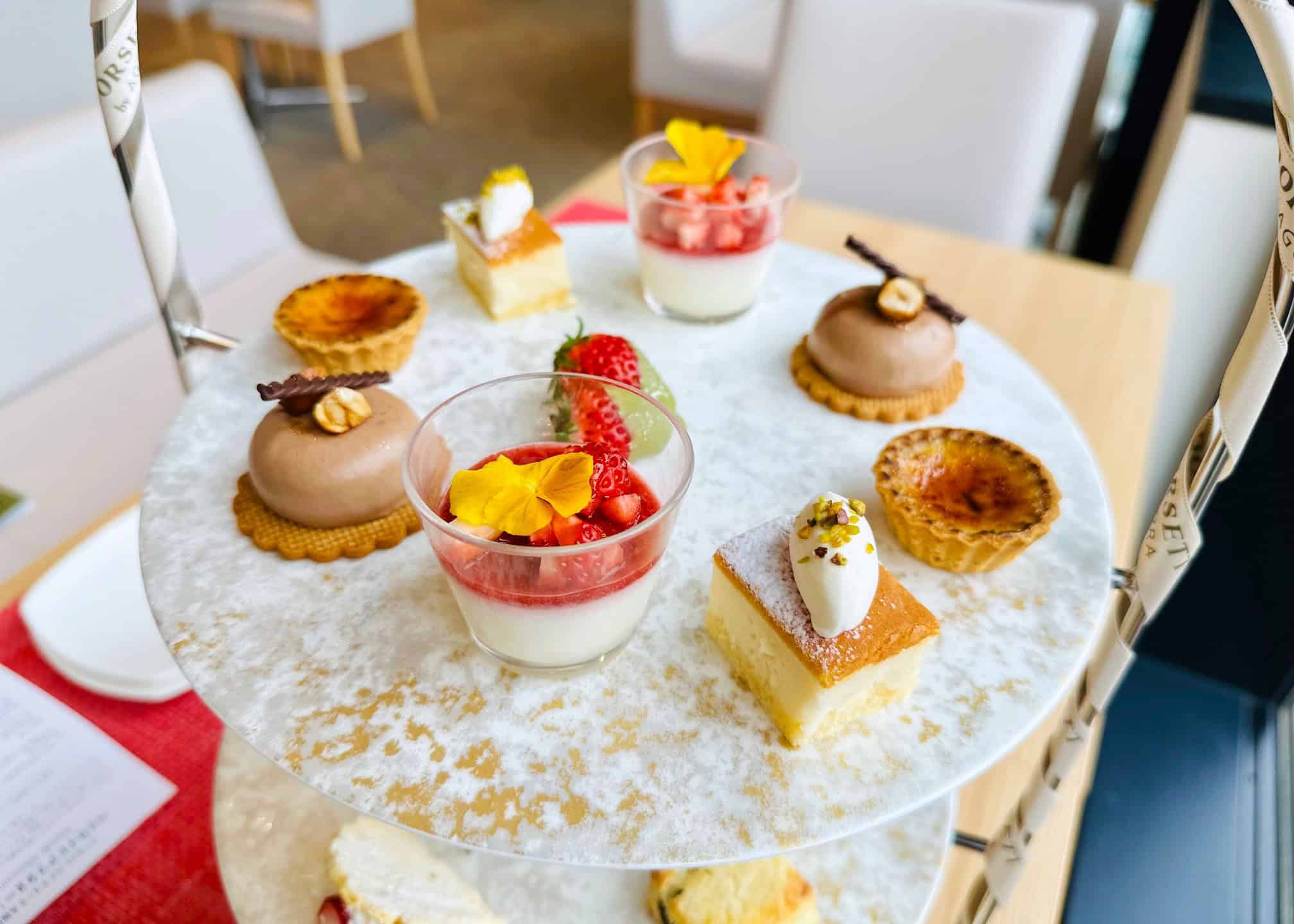 1周年を記念してオープンする新レストランでは「ベイサイド アフタヌーンティー」がスタート。いちごのスイーツや、本格的なエッグタルト&杏仁豆腐、宝箱に入ったシークレットスイーツ、充実のセイボリーなどこだわりのメニューが、美しい3段スタンドで運ばれてきます。