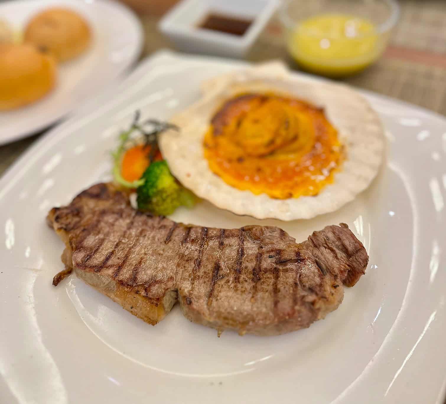 ビーフグリルとホタテ貝のオーロラソースグラタン