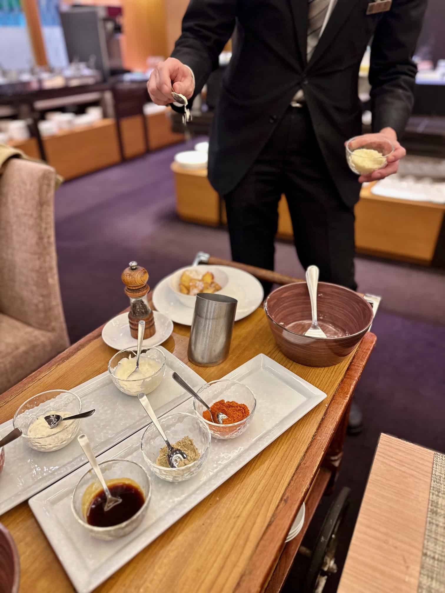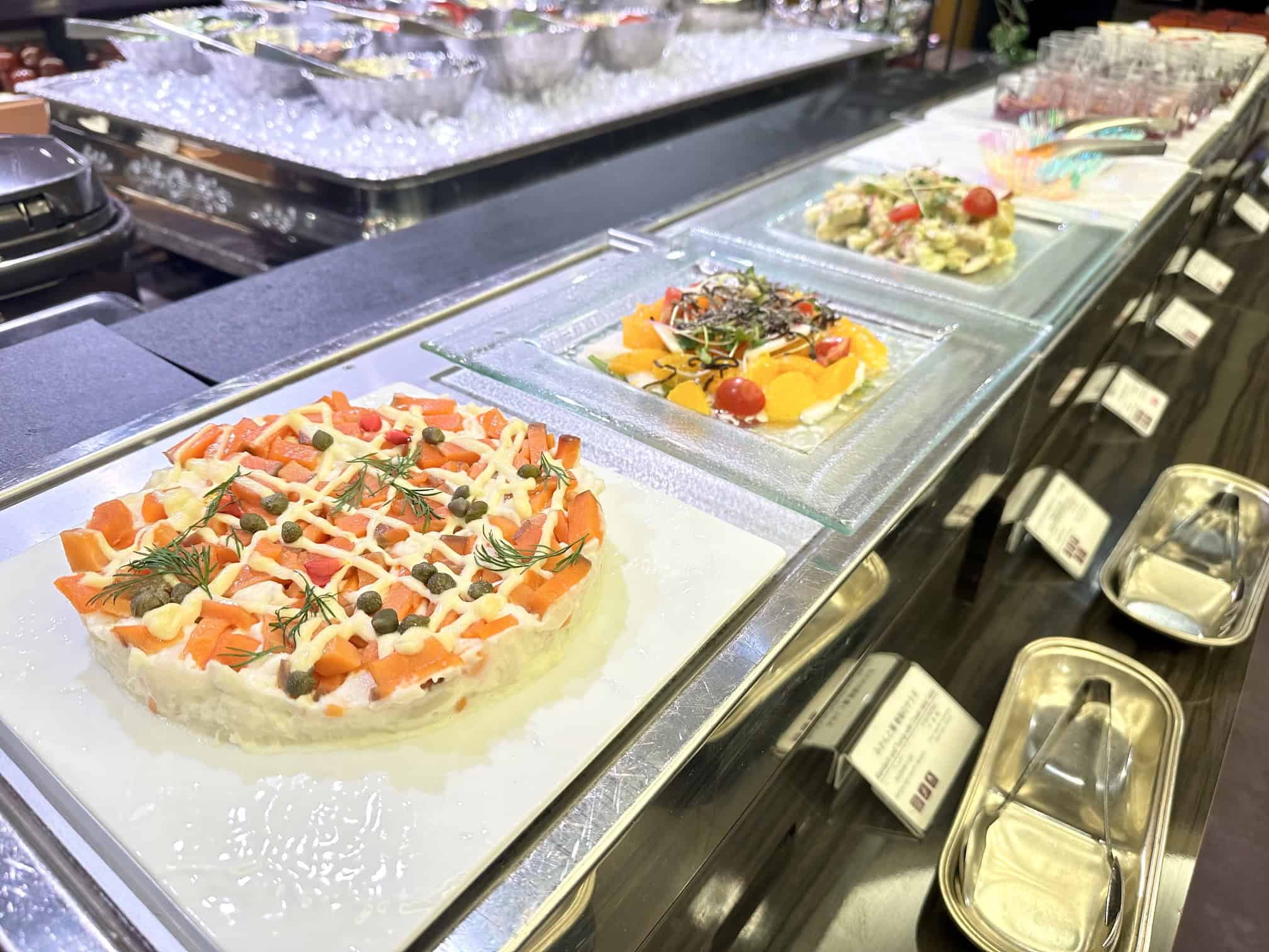 冷菜やスープはもちろん、ライブコーナーや、テーブルに届く2種の揚げたてフレンチフライなど、子どもたちが喜ぶメニューが盛りだくさん!大人はセルフステーションで、お酒を心ゆくまでフリーフローで楽しめるのも嬉しいポイントです。