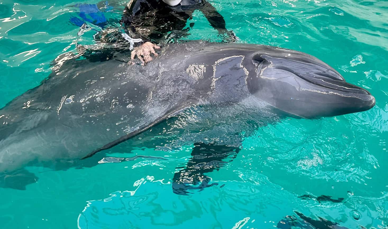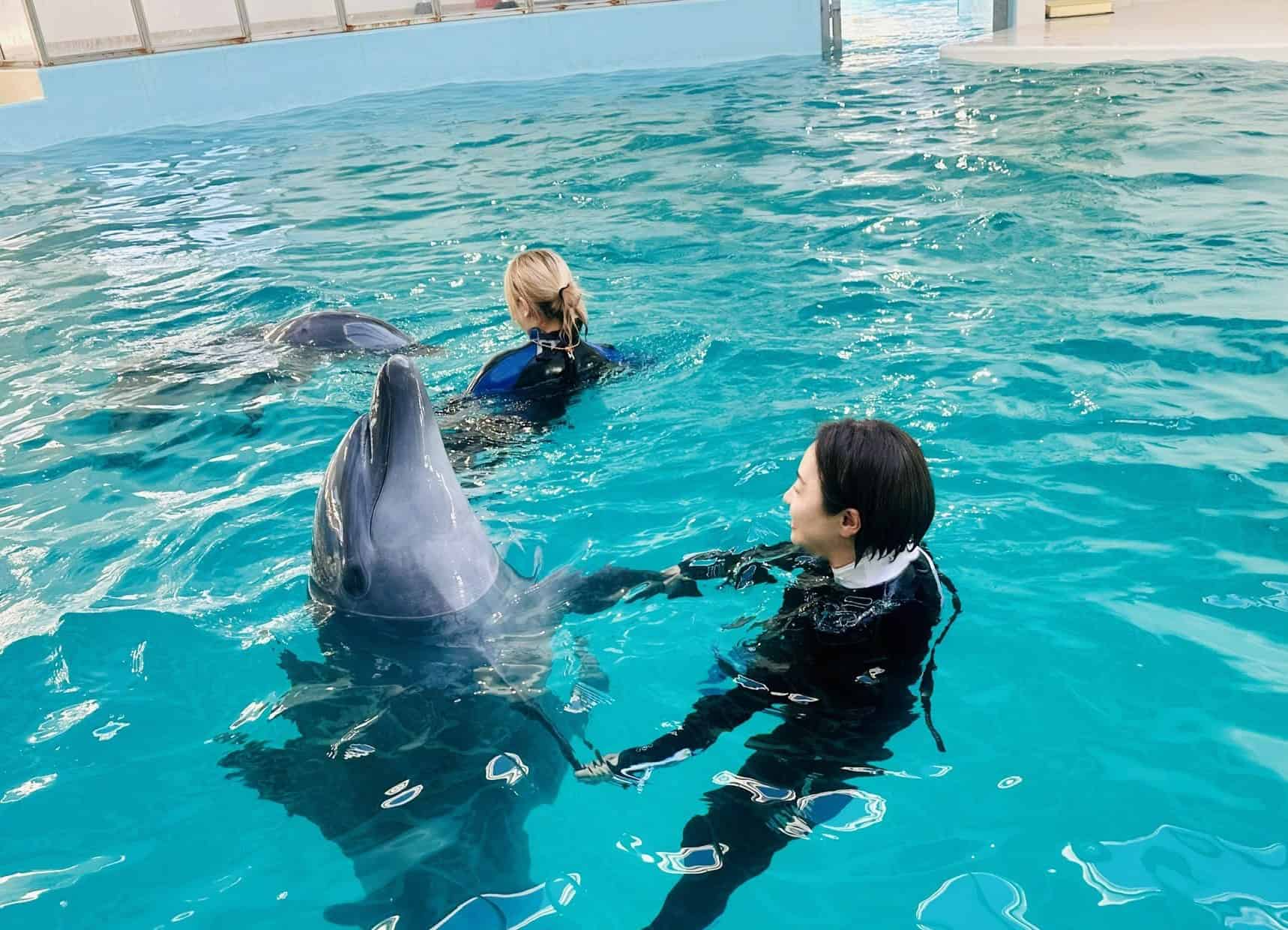 ホテルのすぐそばに昨年オープンした「ノア ドルフィンドーム」は、イルカと触れ合える都市型の体験ドーム。イルカの見学はもちろんのこと、餌やり、浅瀬でのふれあい、イルカにつかまって泳ぐドルフィンスイムも体験できます。
