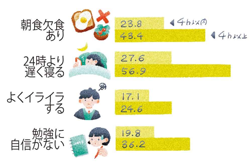全国10万人の子どもへの調査で発覚した、利用時間が及ぼす驚きの弊害! 4時間以上の使用習慣が続くと、驚きの結果に。まるで人格まで変わってしまうような傾向が表れることも。