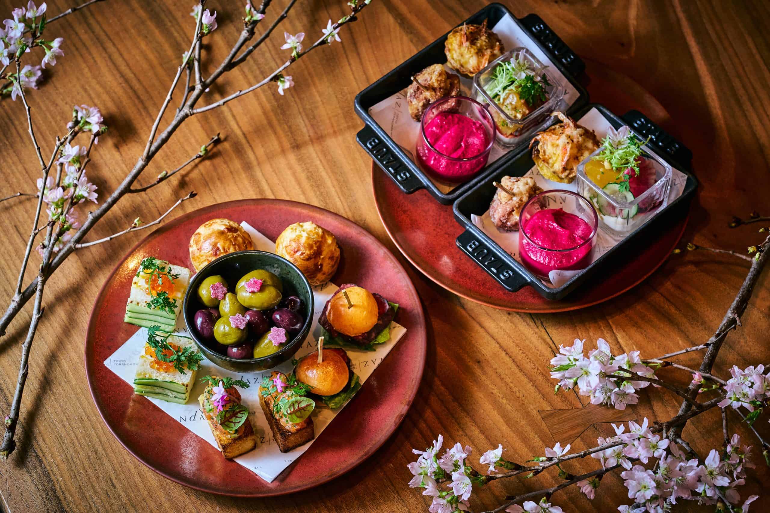 夜景と桜に酔いしれる「夜桜プレミアムビュープラン」では、ペリエ ジュエのシャンパーニュをはじめとするワインやソフトドリンクとともに、シェフが手掛けるカナッペを楽しめます。桜海老とグリュイエールチーズの香ばしさが広がる「桜海老のキッシュ」や、厳選した富士山サーモンを自家製スモークにして爽やかなヨーグルトソースと胡瓜・玉葱ピクルスの食感を重ねた「スモーク富士山サーモンタルタル」など、春の情景を映し出す彩り豊かなメニューがラインナップ。この季節だけの特別なテラスで、五感を満たす贅沢なお花見を楽しめます。