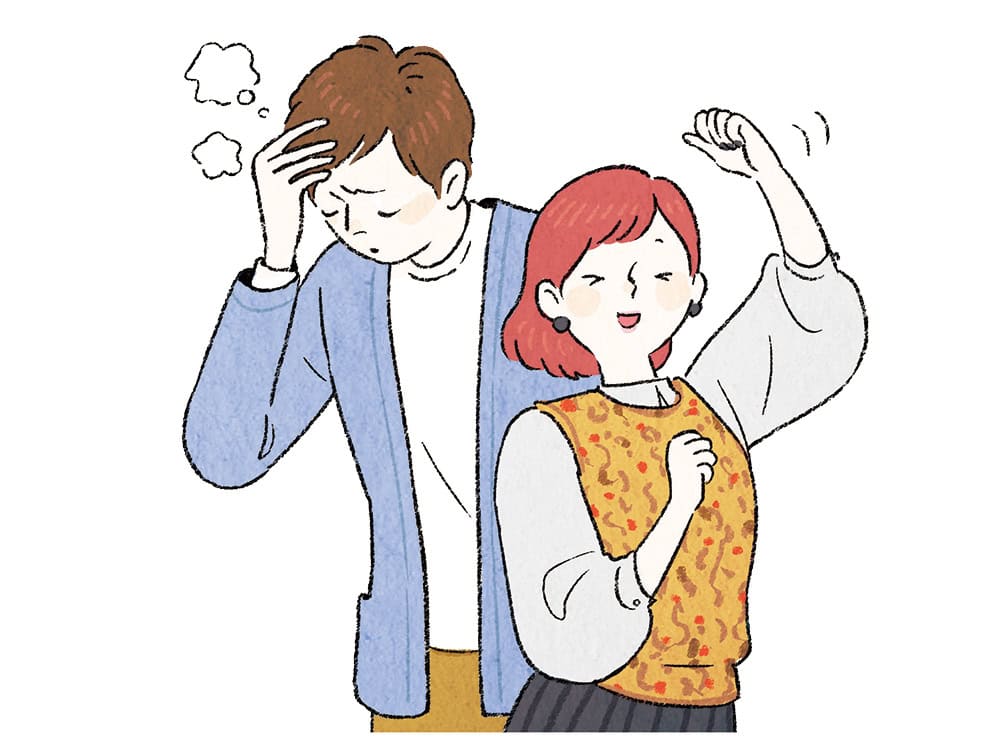 楽しさ優先の夫と思考派の妻。夫は妻の指摘や疑問を「細かい」と感じがち。一方、妻には夫の行動が「行き当たりばったり」「詰めが甘い」と見えやすいです。管理しすぎず、甘えすぎない、適度な距離が仲良し持続の秘訣。まずは相手のプライドを傷つけないこと!