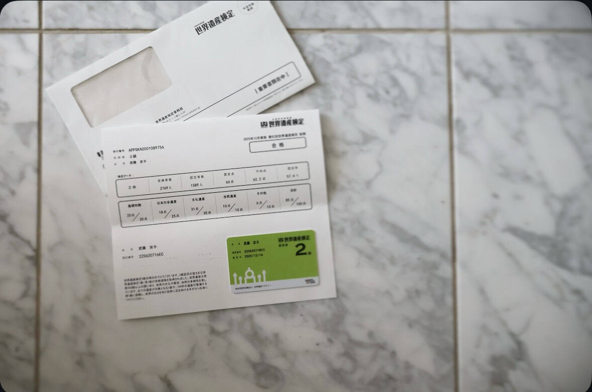 世界遺産検定2級の認定証が届きました。