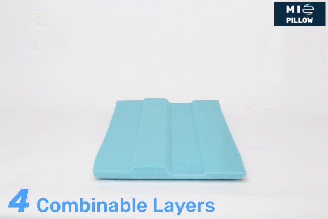 ミオピローはさまざまな品質のメモリーフォームから作られた4つの組み合わせ可能なシートから構成されています。