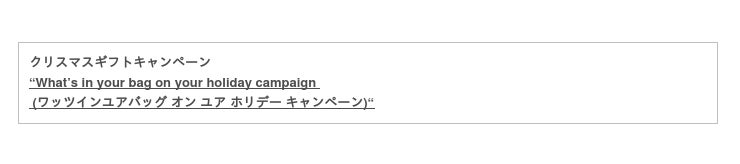 クリスマスという特別なシーズンもAMULETとともにより安心して幸せなひとときを過ごして欲しいという想いを込めて、“What’s in your bag on your holiday campaign (ワッツインユアバッグ オン ユア ホリデー キャンペーン)“と題した期間限定のキャンペーンを実施します。